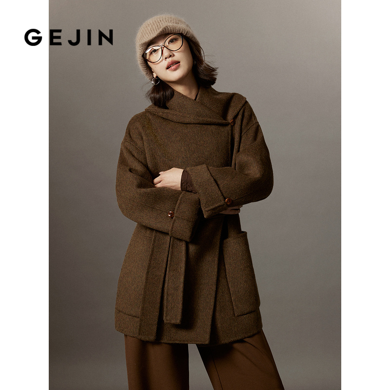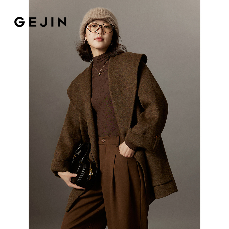歌锦鼎级欧美风骆驼绒+绵羊毛廓型翻领短款双面呢外套女羊绒大衣