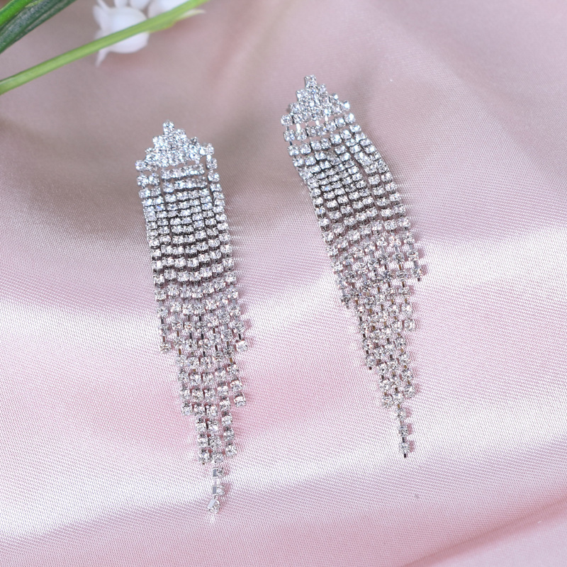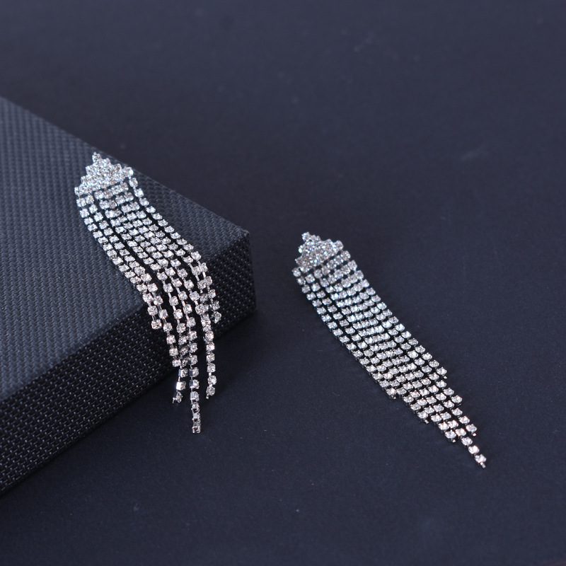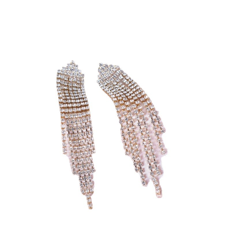 欧美长款夸张流苏镶钻耳环 时尚气质简约耳饰耳钉外贸饰品