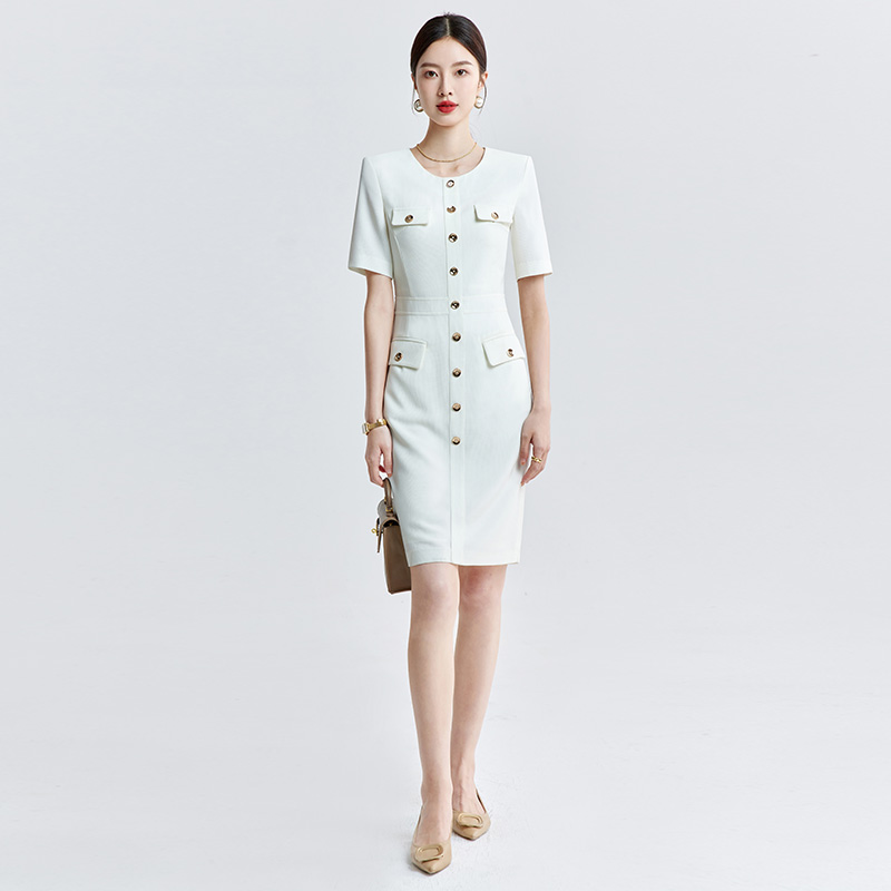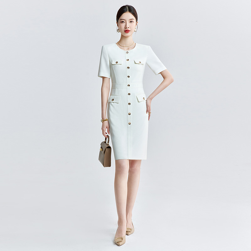 2025夏季高级感白色短袖圆领西装连衣裙女气质通勤职业装新款套裙