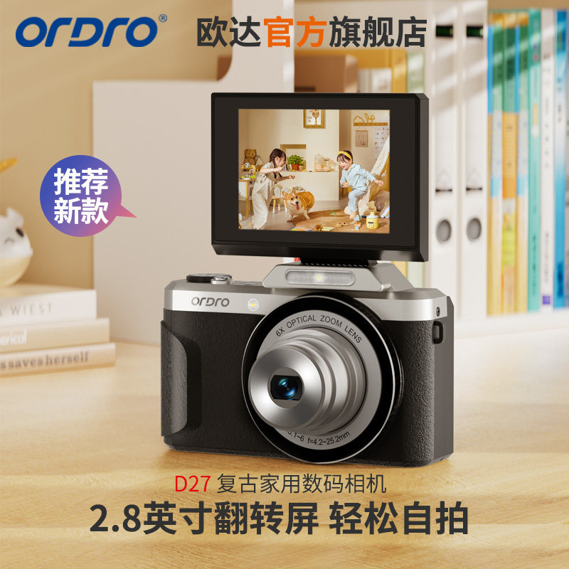 欧达D27新款复古家用数码相机学生拍照DV光学变焦翻转屏摄像机