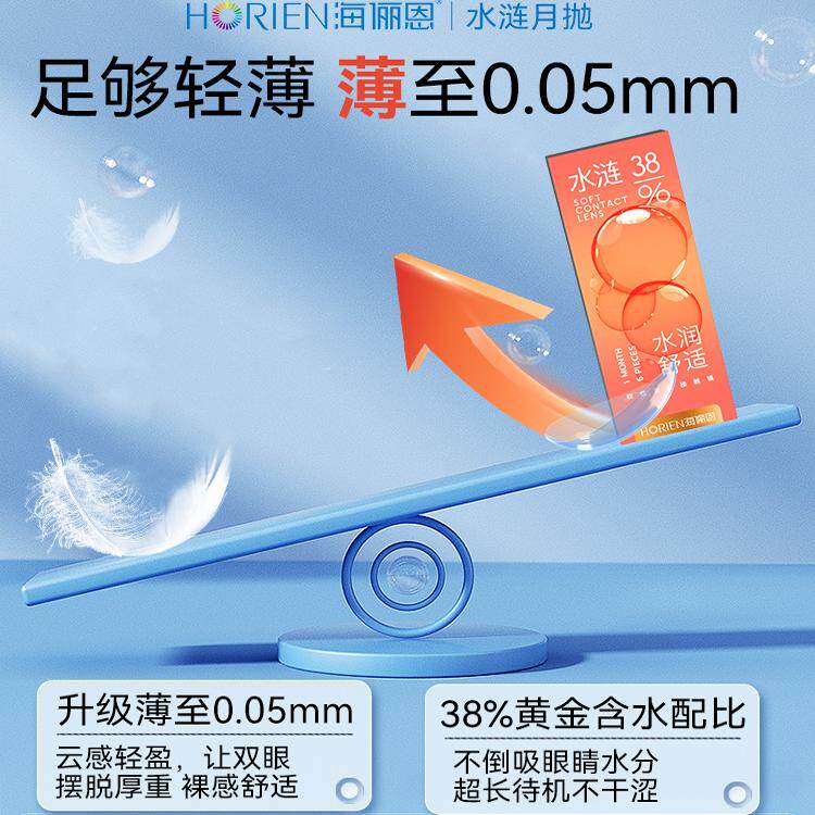 送3】海俪恩水涟月抛6片隐形近视眼镜透明超薄高透氧非日抛旗舰店