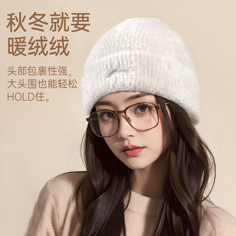 李宁帽子女秋冬针织毛线帽加厚保暖月子帽护耳大头围新款包头冷帽