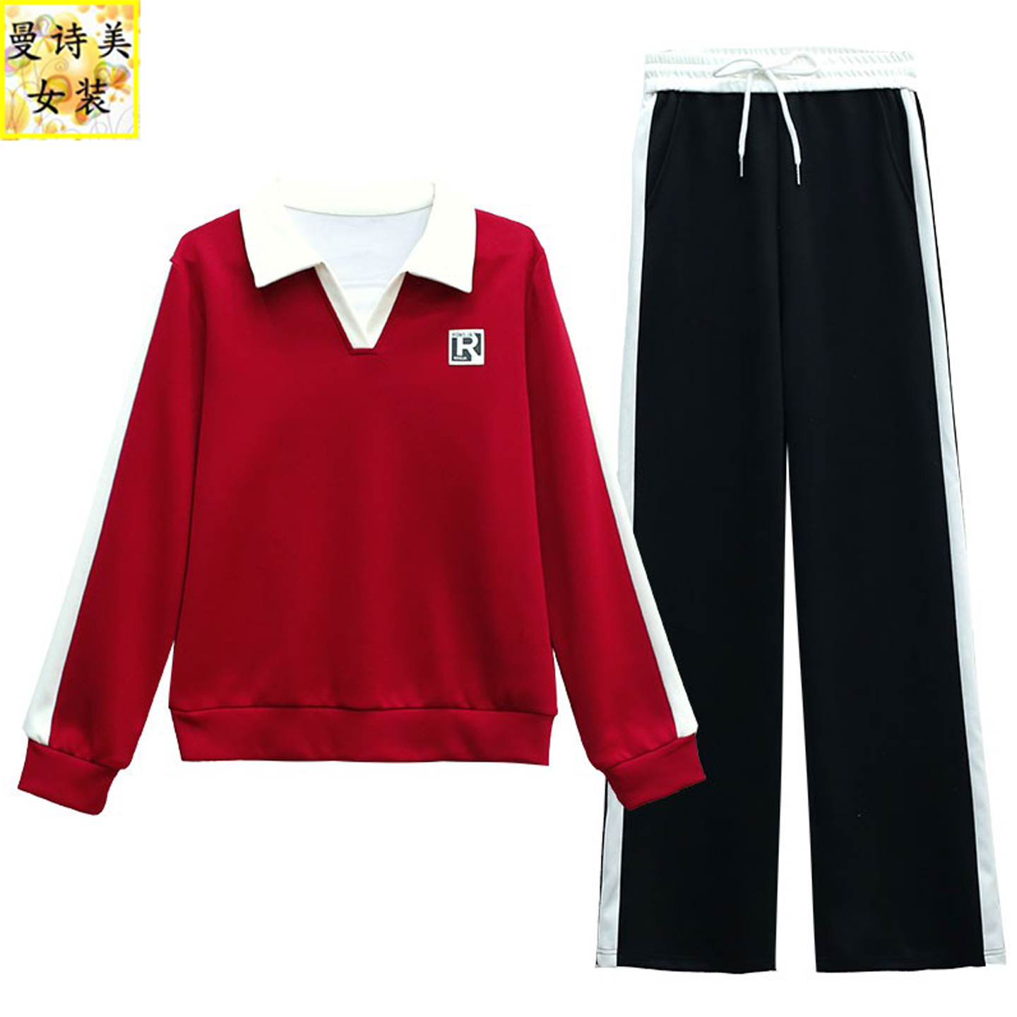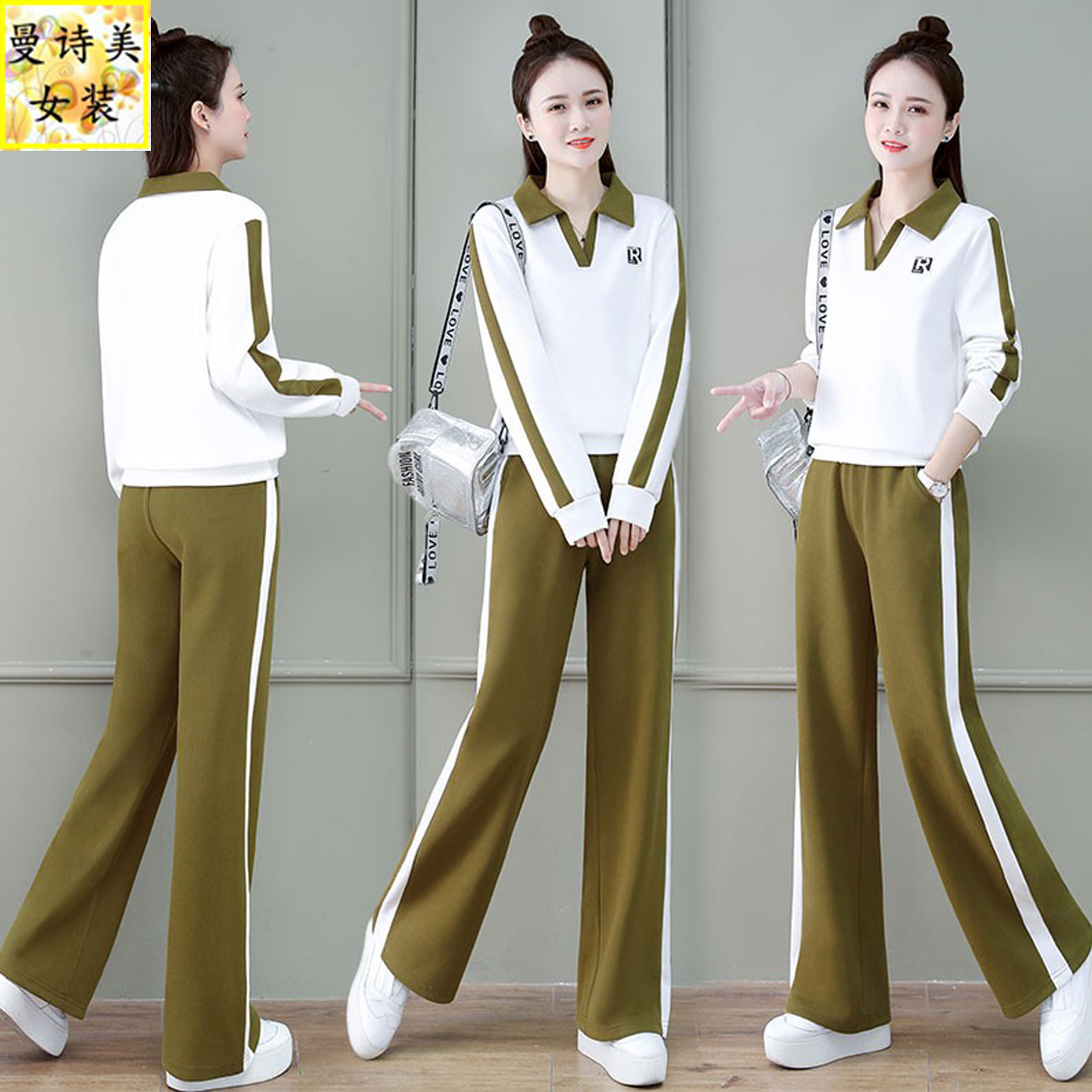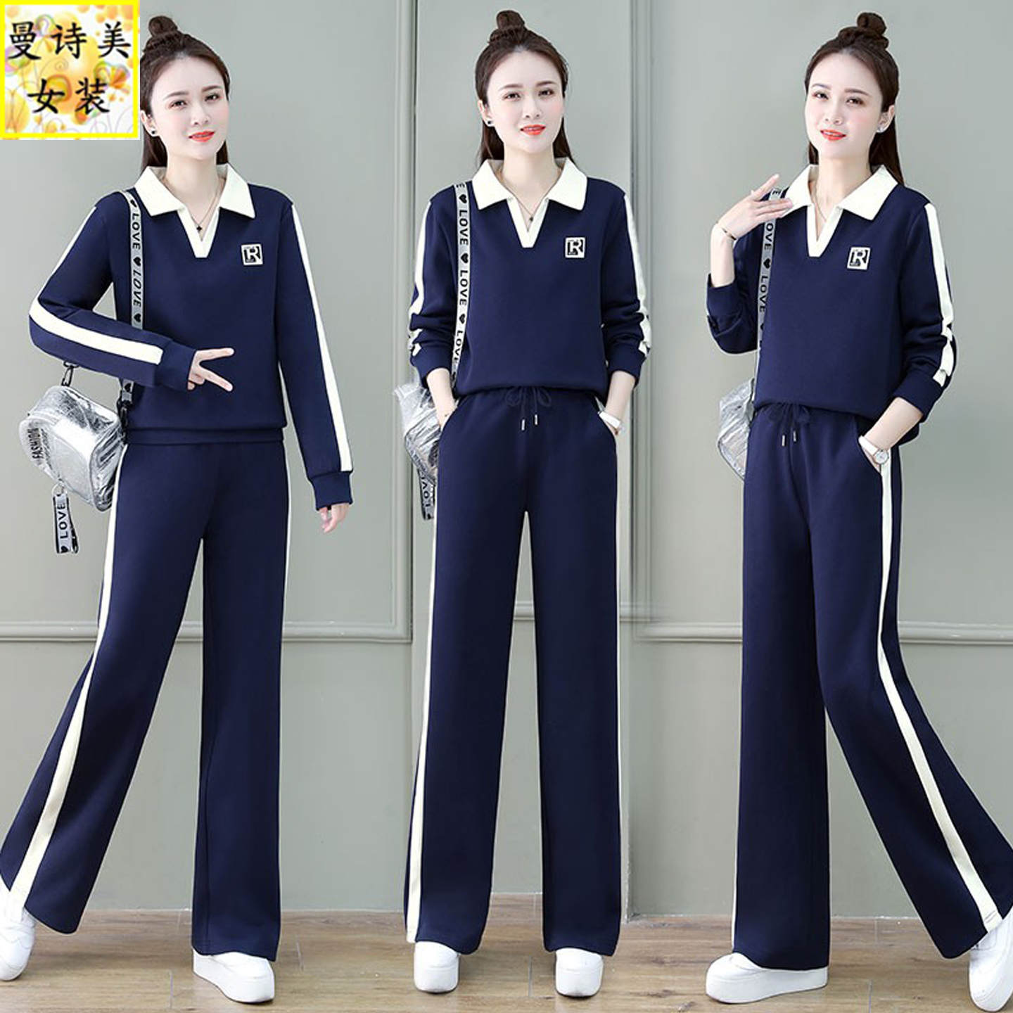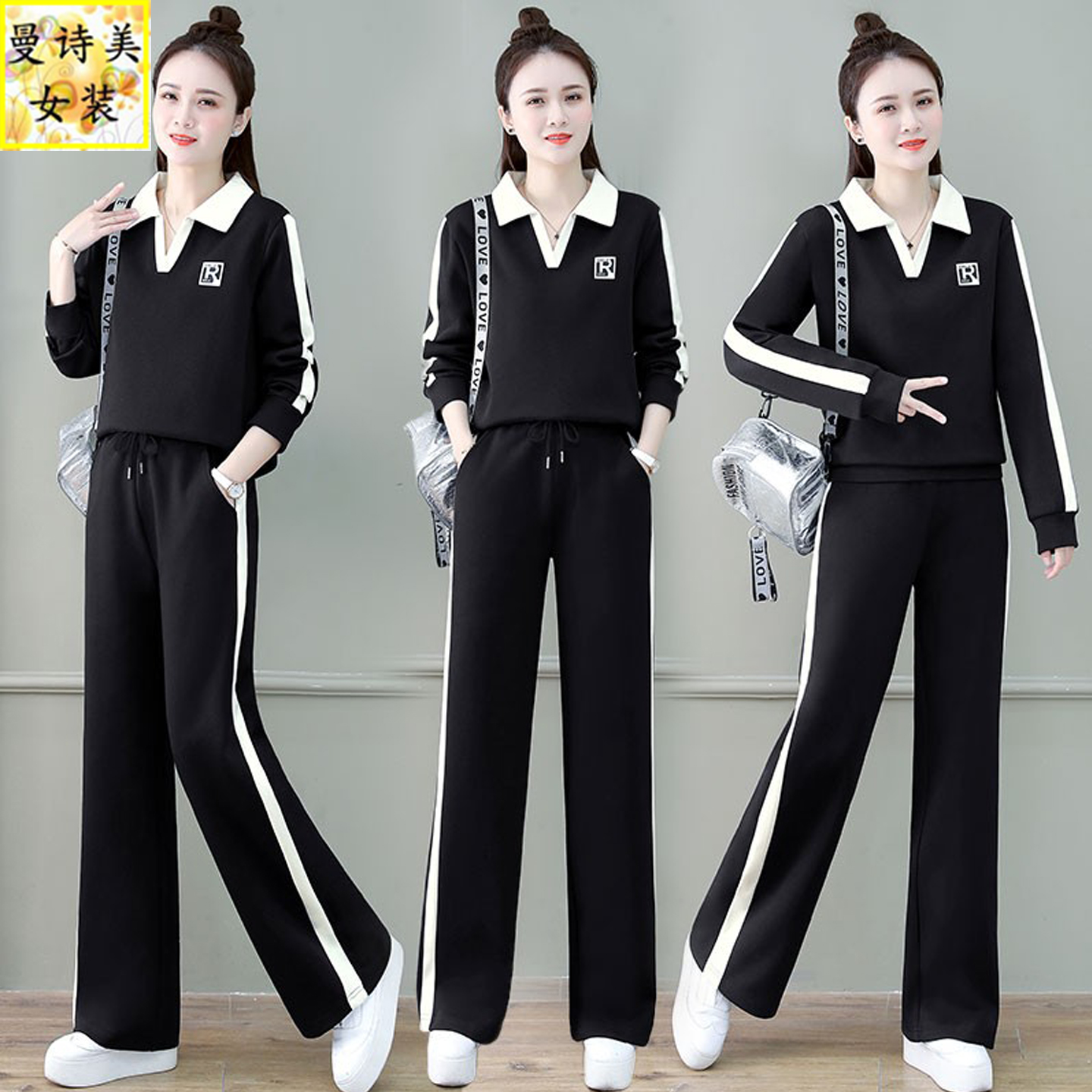 气质洋气减龄翻领阔腿裤运动休闲套装女士2025春秋新款宽松两件套