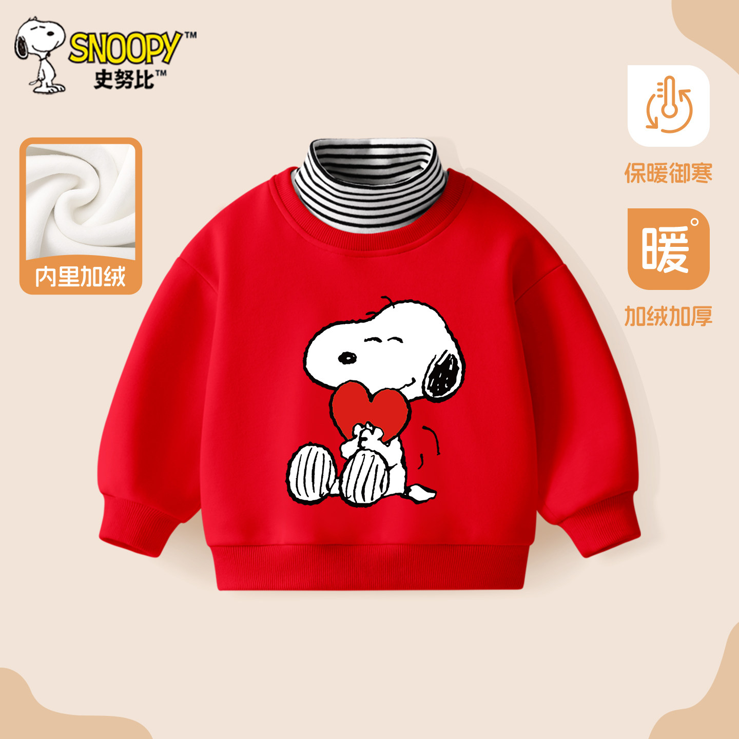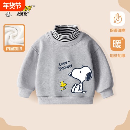 史努比男童加绒卫衣秋冬款2025新款上衣宝宝衣服冬装儿童衣半高领