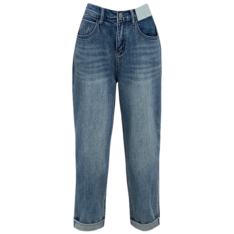 2025夏季jeans阿凡牛A3967后松紧腰宽松九分女牛仔老爹跨裤哈伦裤