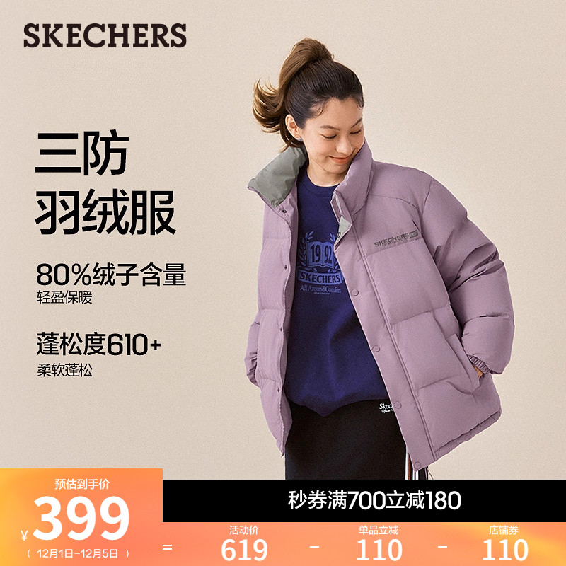 斯凯奇2025冬新款男女短款羽绒服外套保暖防泼水户外登山服夹克服