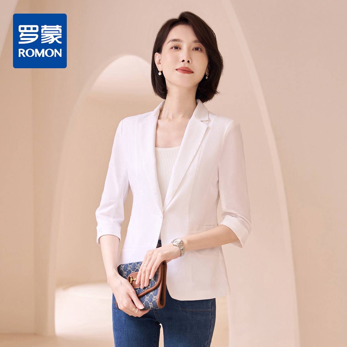 【棉麻】罗蒙夏季轻薄透气小西装外套女士休闲百搭通勤单西服上衣