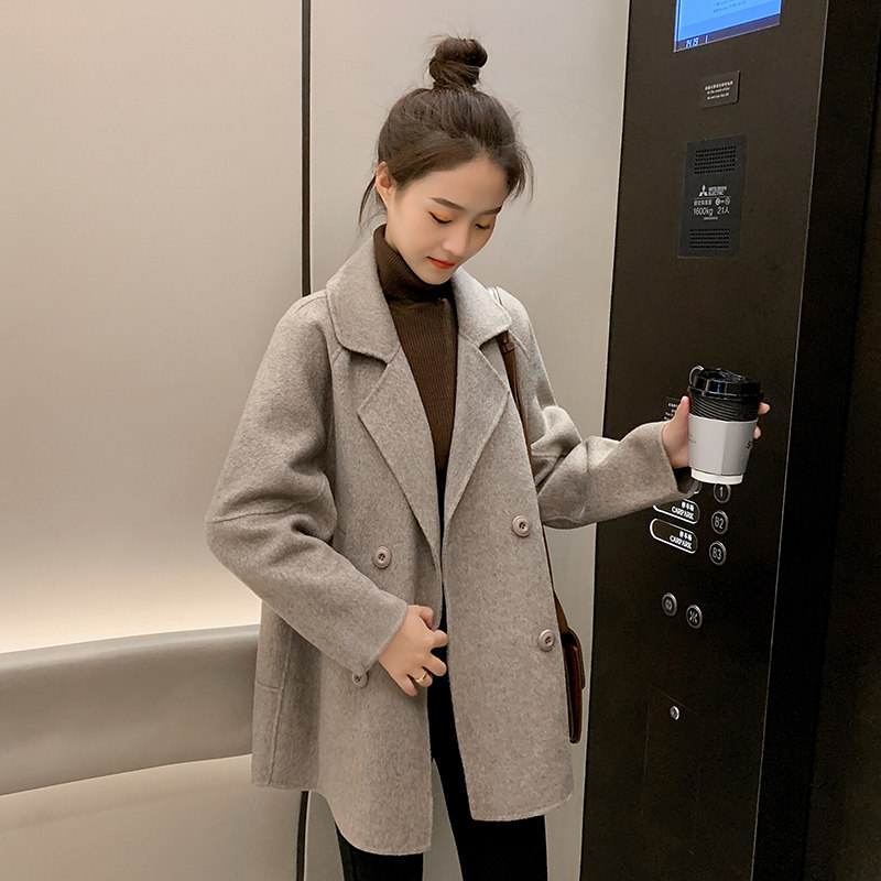 小个子西装领双面羊绒呢子大衣韩版2025新款秋冬中长款毛呢外套女