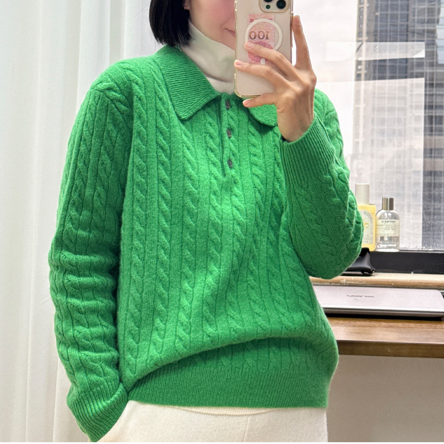 81HOURS 25冬Polo领绞花纯山羊绒女套针织衫百搭显瘦毛衣
