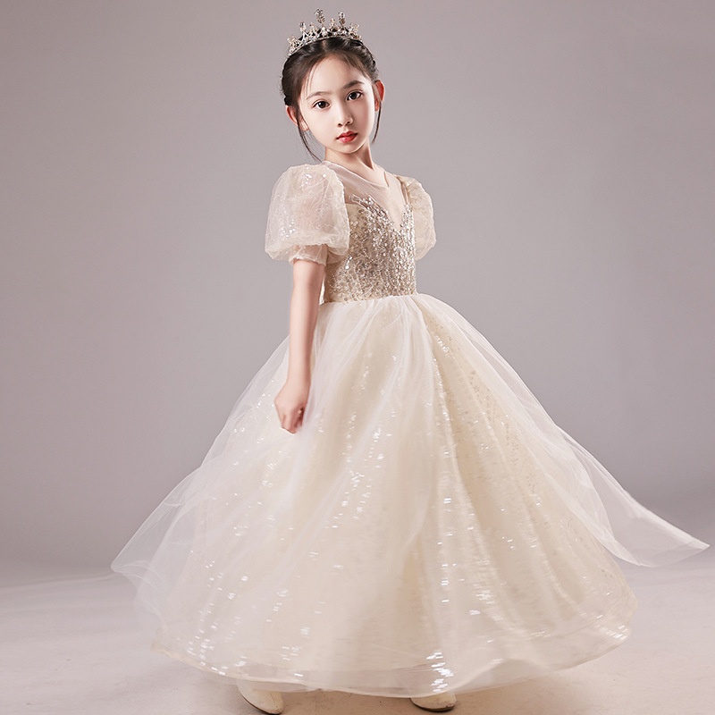 2025新款女童钢琴演出服秋季香槟色独唱生日礼服公主裙洋气小