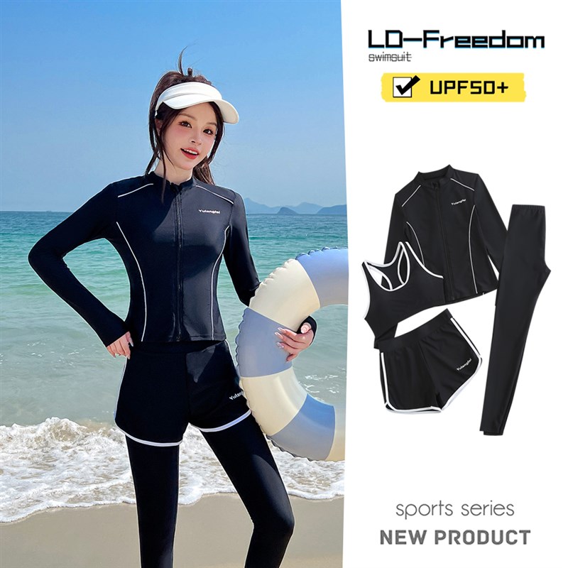 游泳衣女长袖长裤全身防晒冲浪潜水服大码分体成人学生保守款泳装