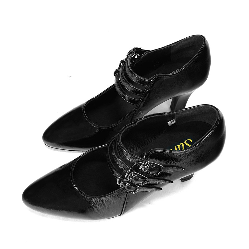 sansha 三沙拉丁舞鞋 英粗跟国标舞牛仔恰恰跳舞鞋牛皮软底舞蹈鞋