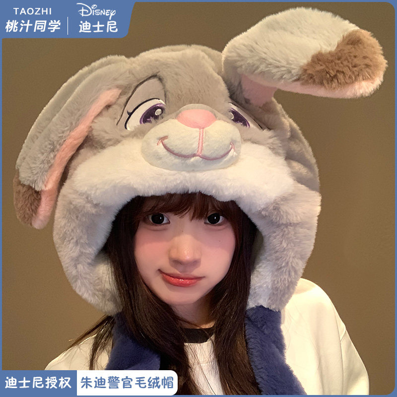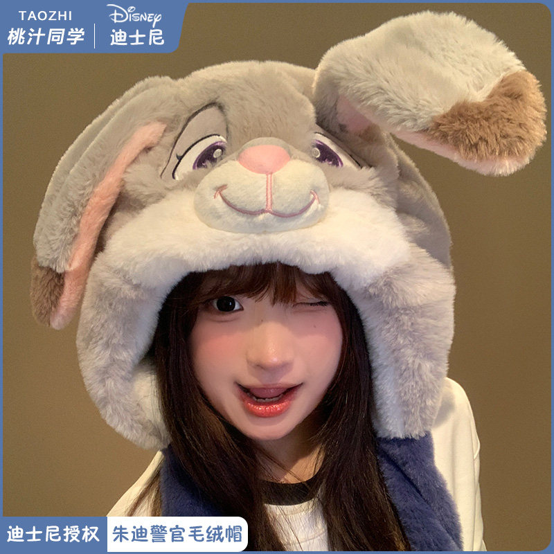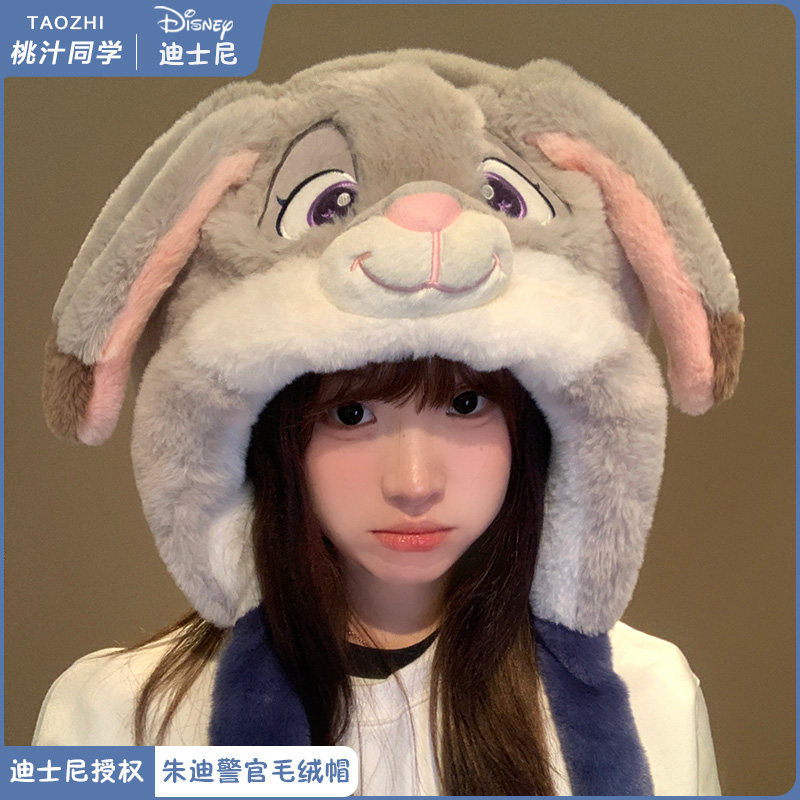 迪士尼正版朱迪尼克狐毛绒帽子女秋冬保暖情侣可爱护耳雷锋帽新款