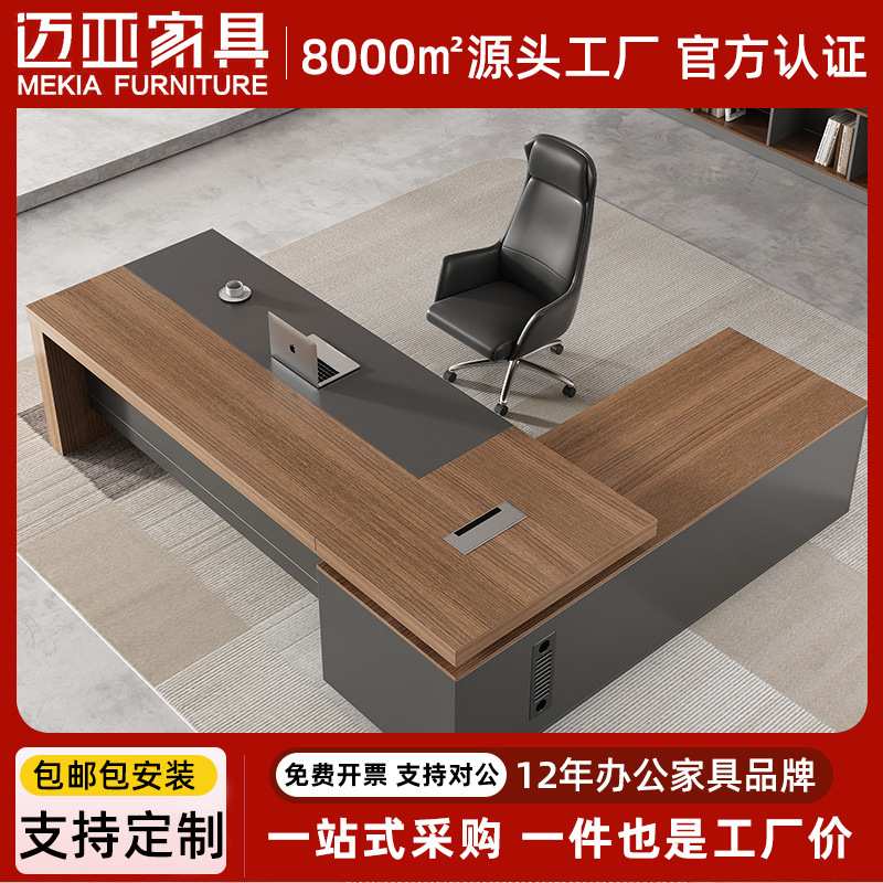 现代商务办公桌感总裁老板桌时尚大班台板式电脑桌1人位现代简约