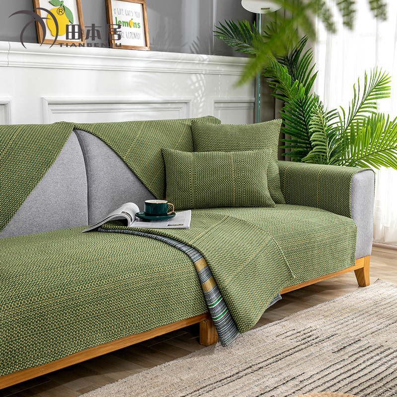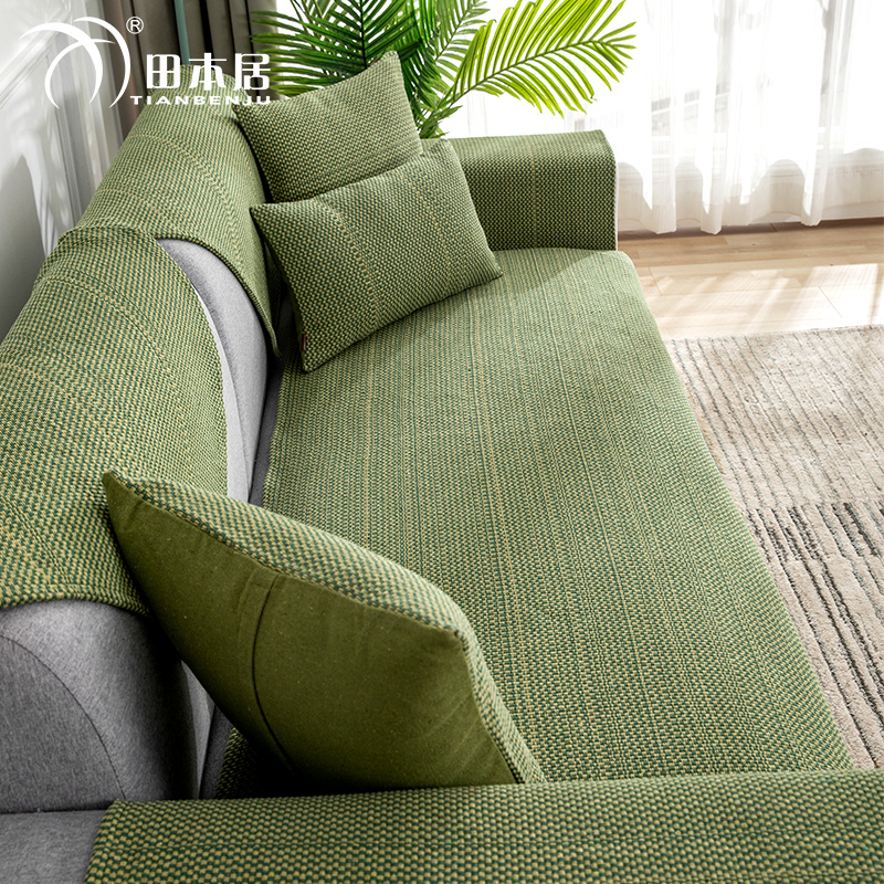 沙发垫四季通用防滑坐垫纯色亚麻全包沙发套罩布艺沙发盖布扶手巾