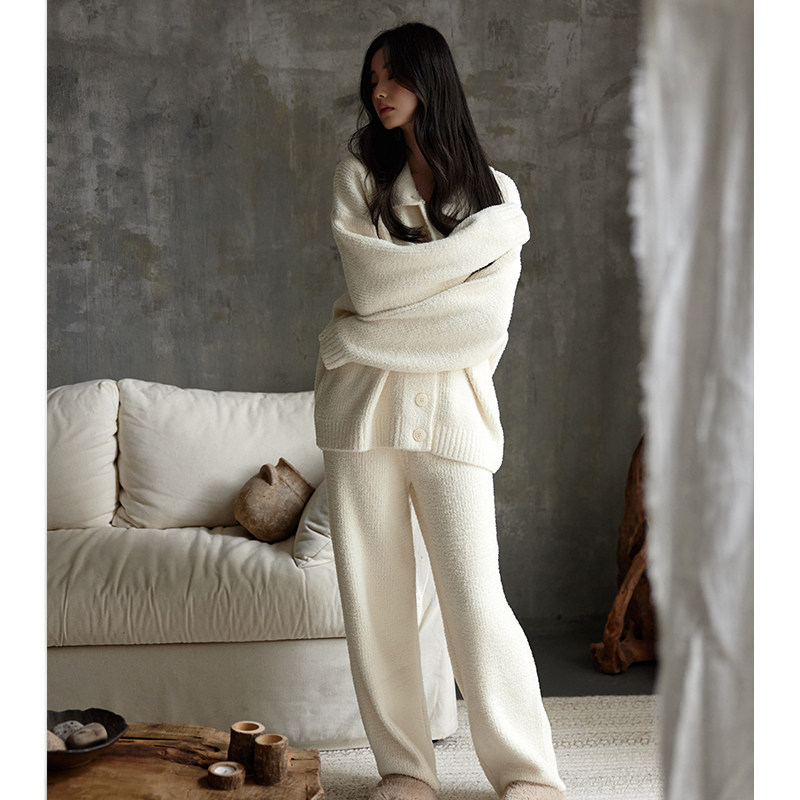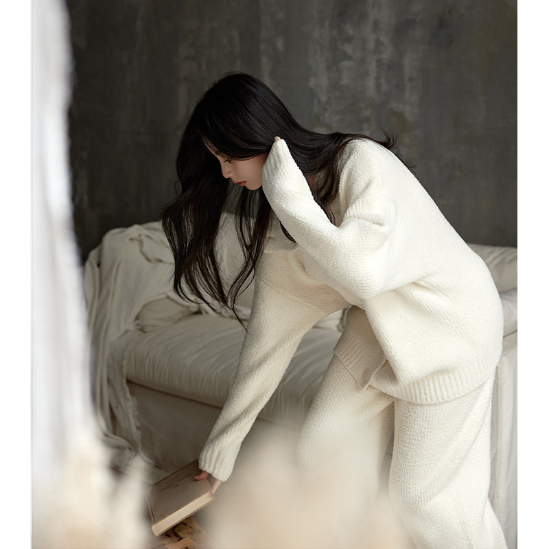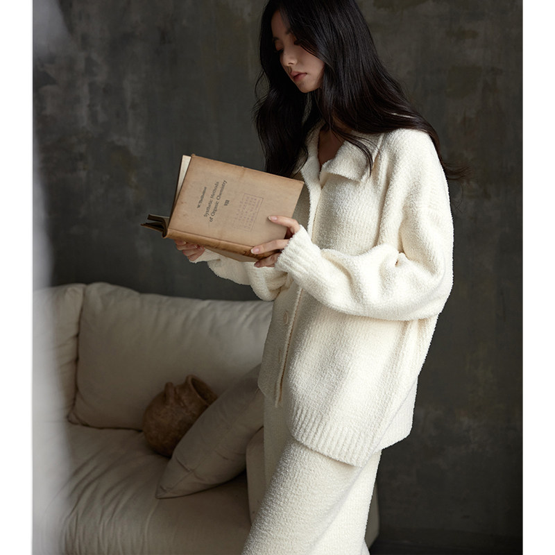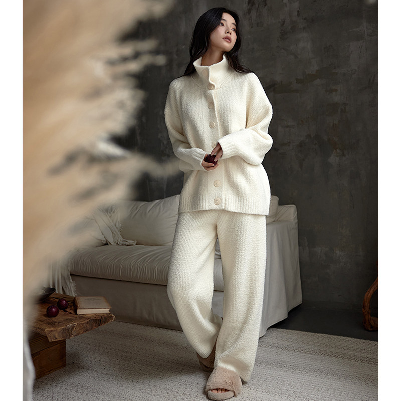 猫人半边绒睡衣女秋冬季加绒加厚保暖珊瑚绒春秋款家居服可外穿冬