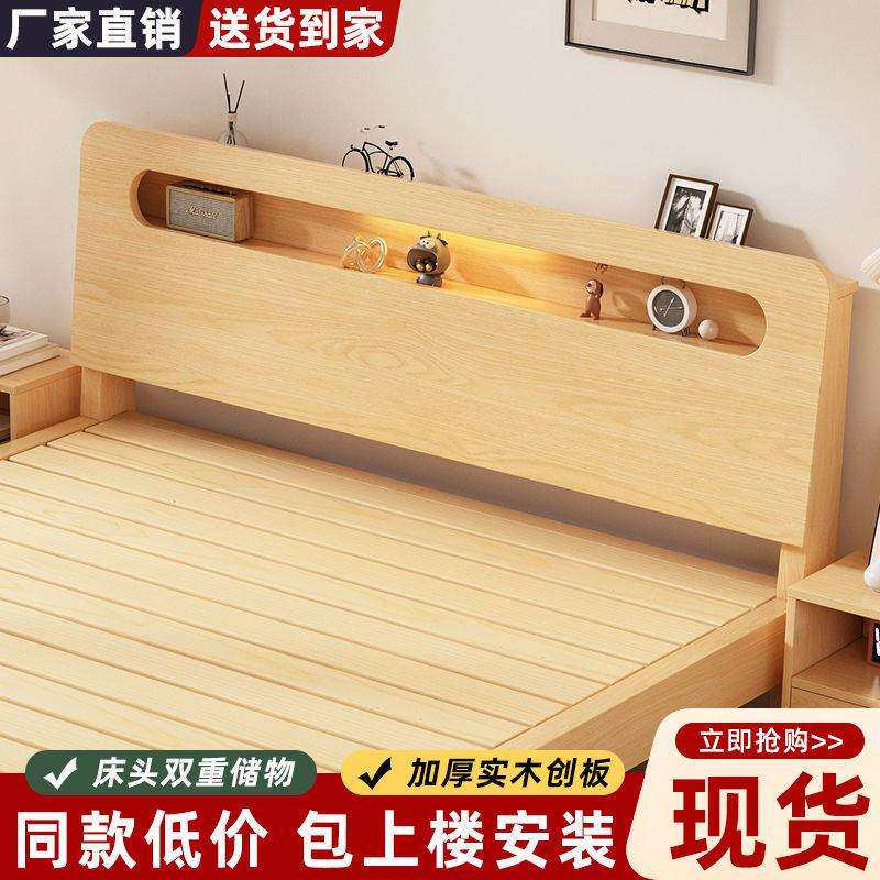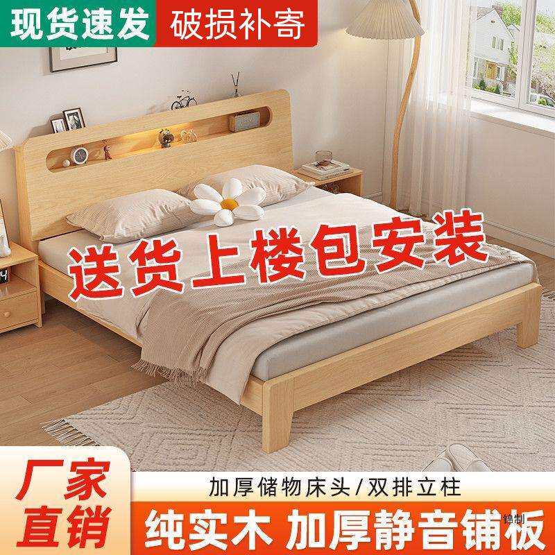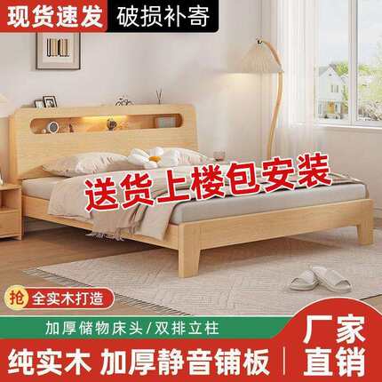 实木床1.5米双人床家用1.8米现代简约出租房经济型1.2m单人床架