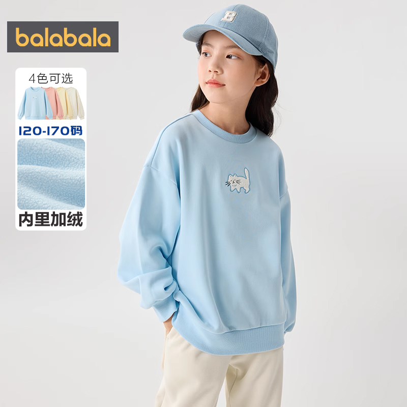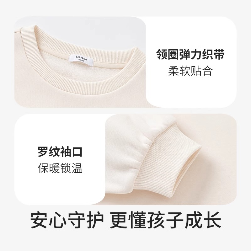 巴拉巴拉女童加绒卫衣中大童白色打底衫秋冬季款童装儿童洋气保暖