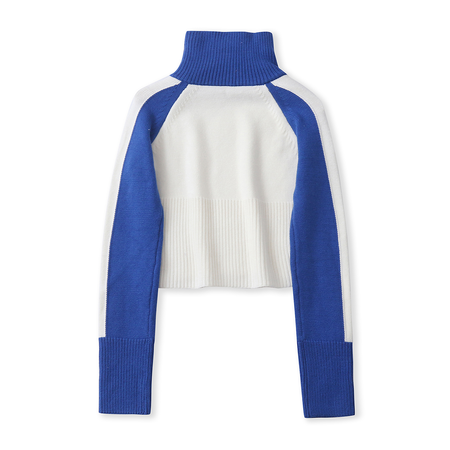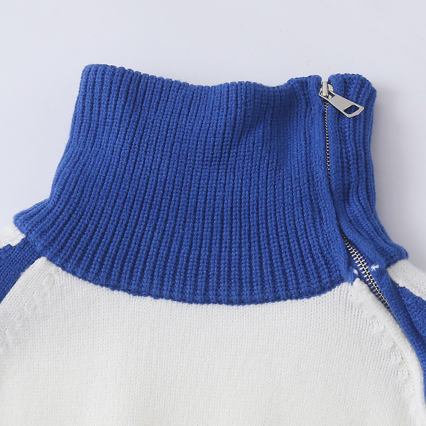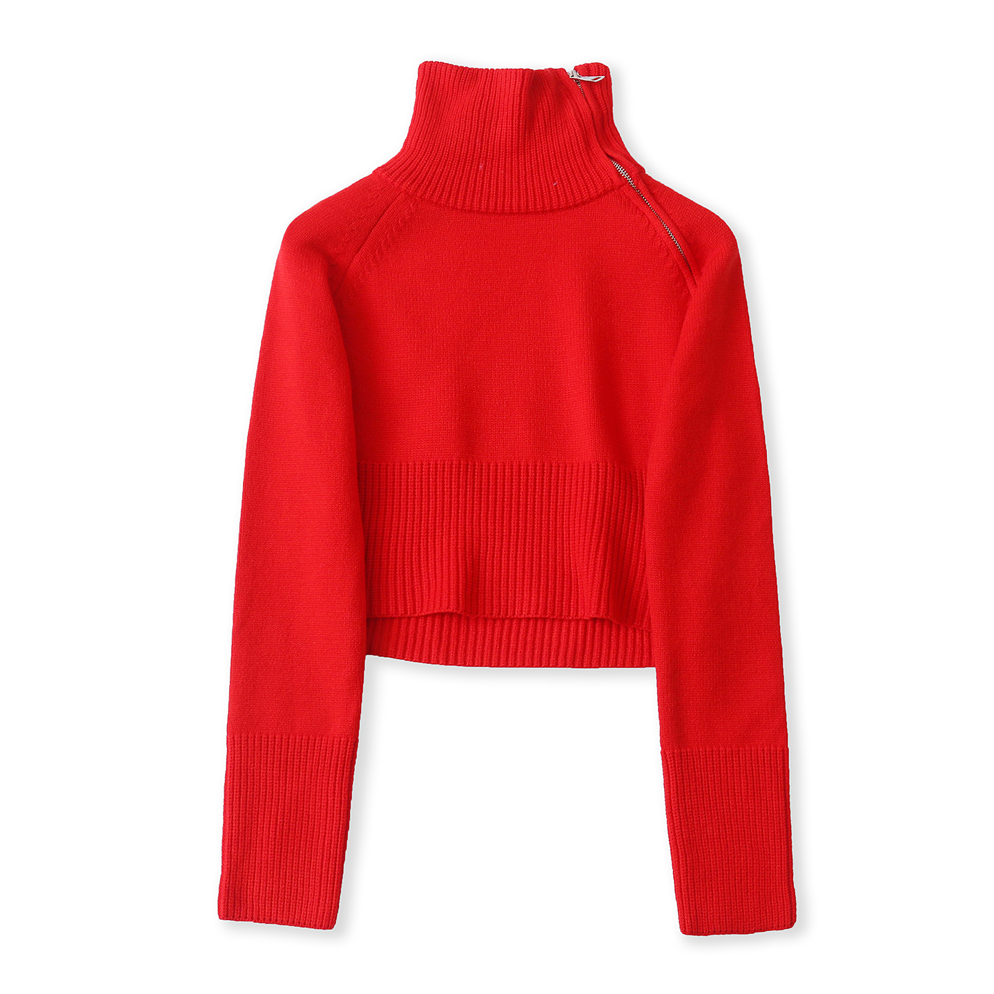 高领撞色毛衣秋新款外贸女装时尚侧拉链修身短款长袖针织衫18566