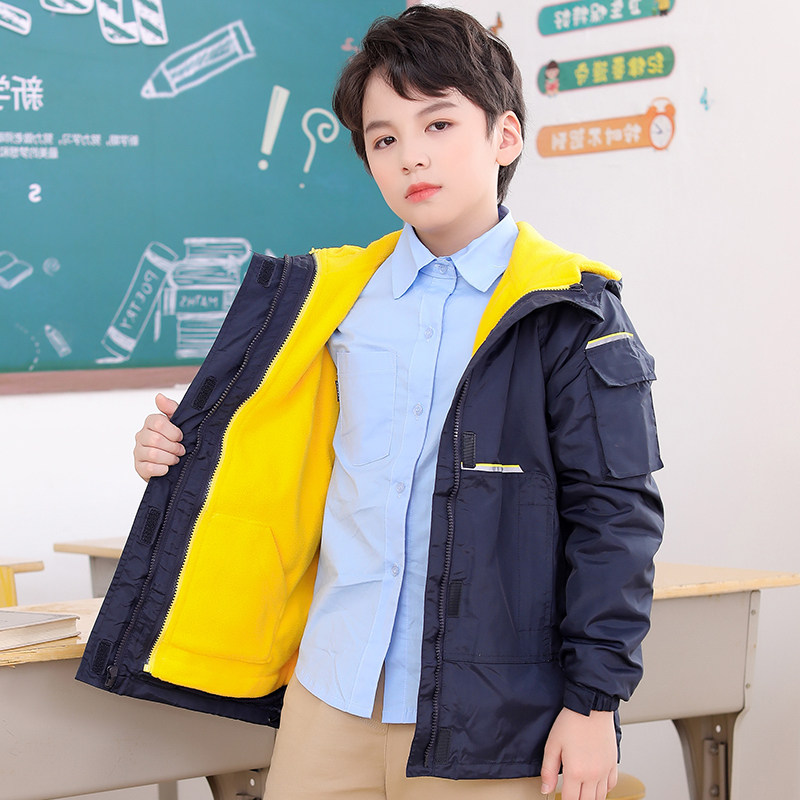 儿童冲锋衣三合一春秋冬款小蜜蜂保暖内胆男女童校服中小学生外套