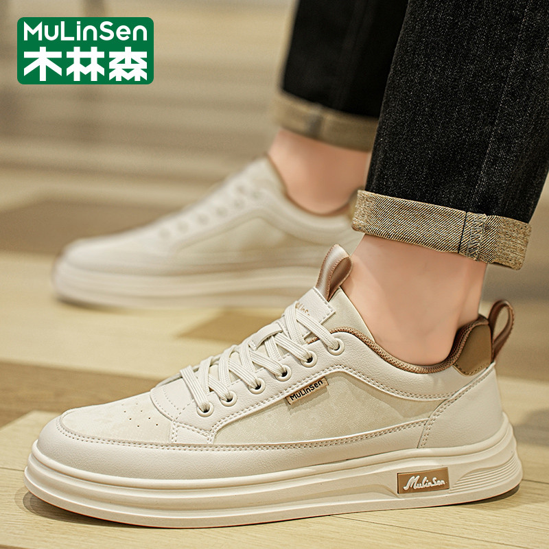 木林森冬季男鞋2025年新款运动休闲百搭板鞋软底小白工作上班皮鞋