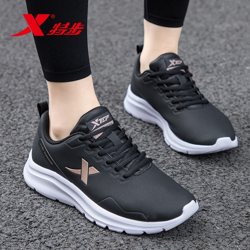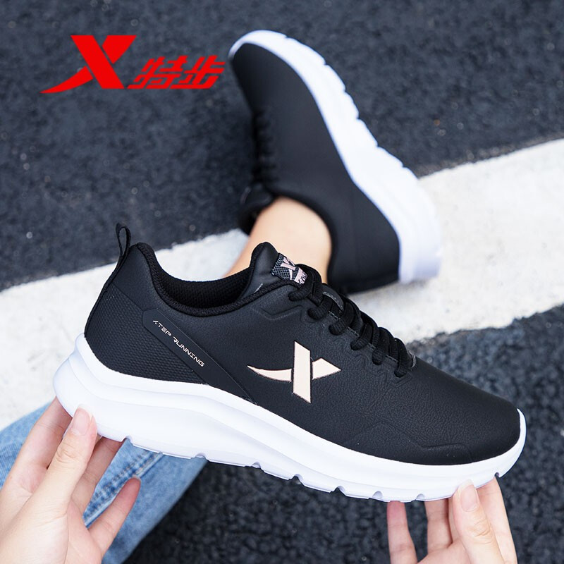 特步跑步鞋女士运动鞋皮面防水鞋