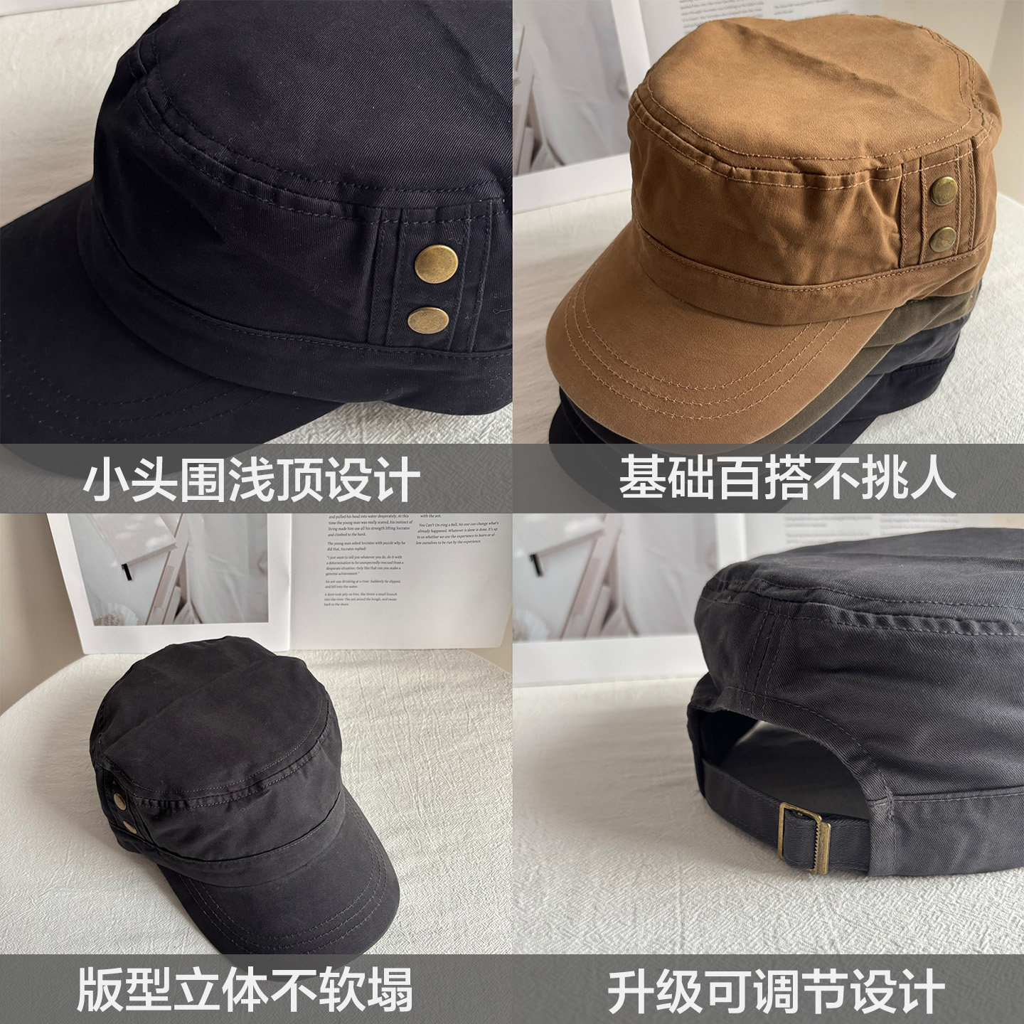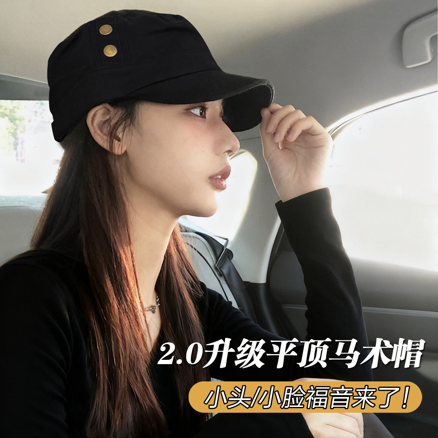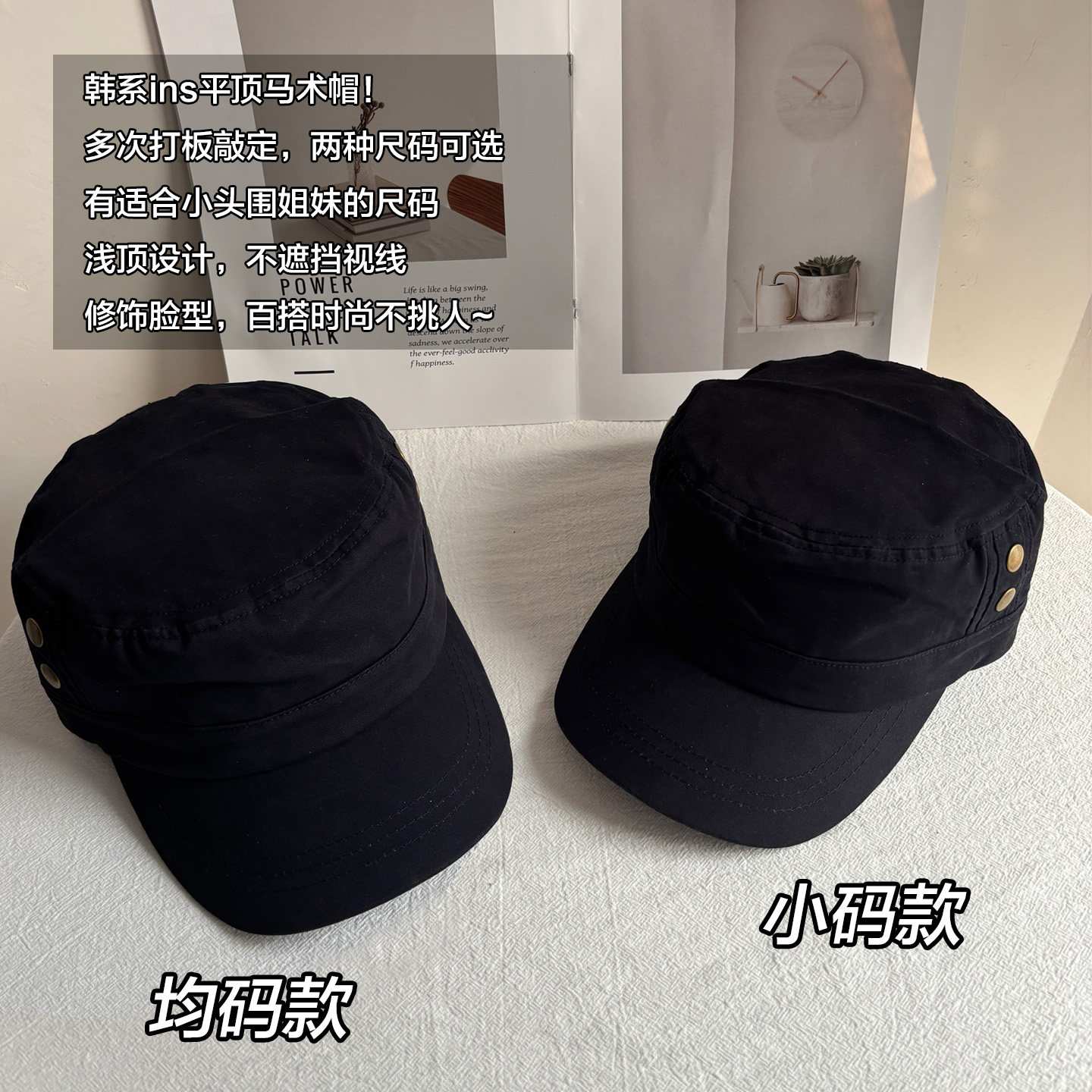 小头围韩系黑色平顶马术帽女秋冬