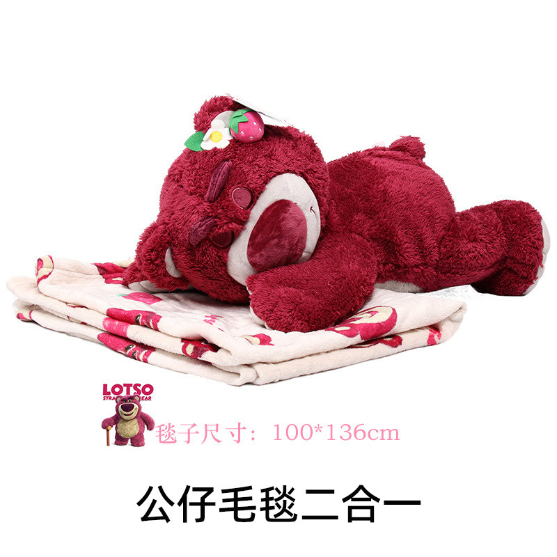迪士尼趴姿草莓熊公仔毛毯二合一