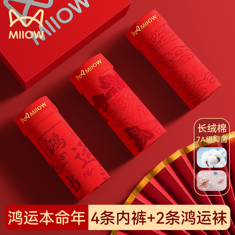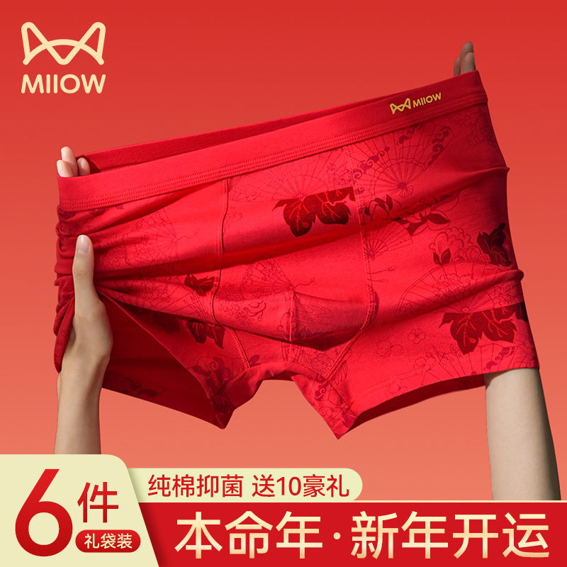 猫人本命年男士内裤红色纯棉2025蛇年短裤男款平角四角裤结婚礼物