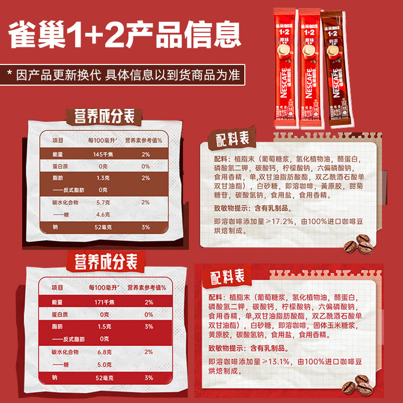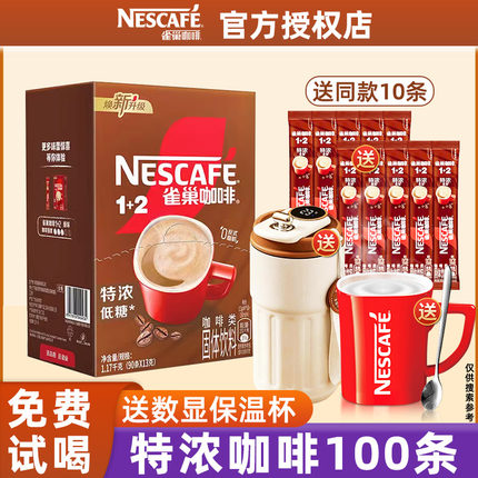 雀巢咖啡1+2特浓奶香拿铁三合一速溶咖啡粉原味提神咖啡雀巢100条
