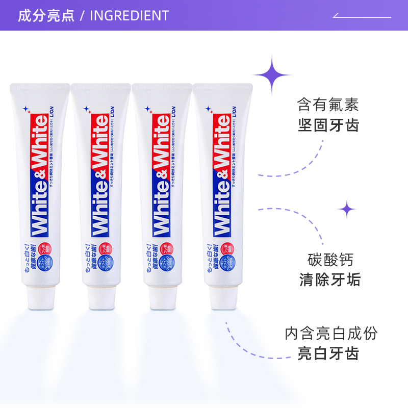 日本LION狮王进口去黄亮白含氟清新成人去渍150g*3支美白牙膏