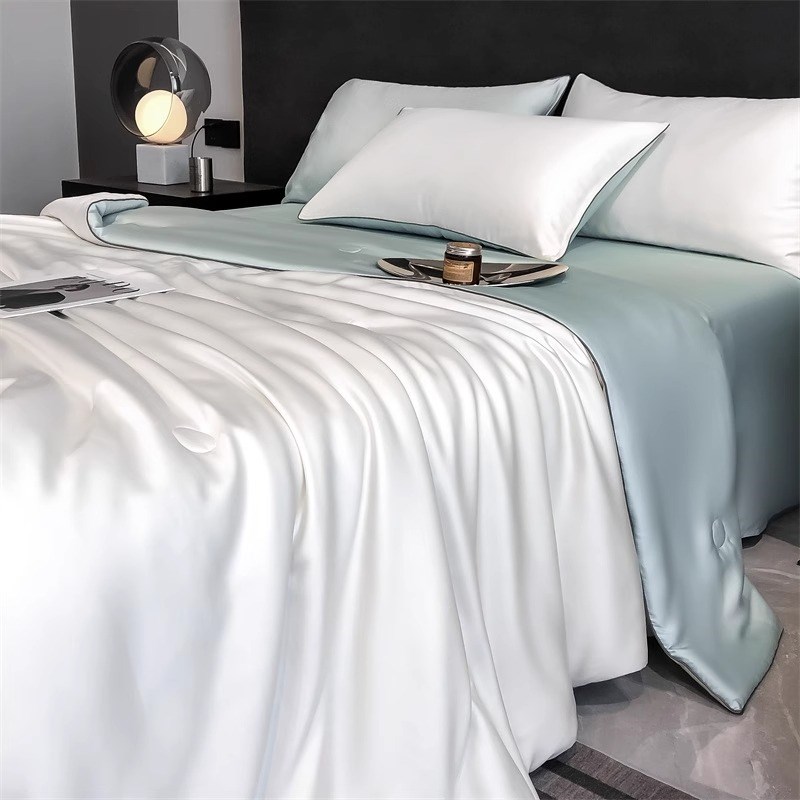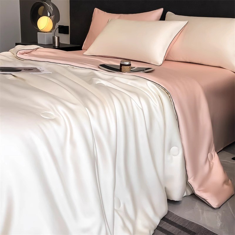 纯色天丝夏凉被四件套夏季高档冰丝空调被裸睡亲肤薄被可机洗被芯
