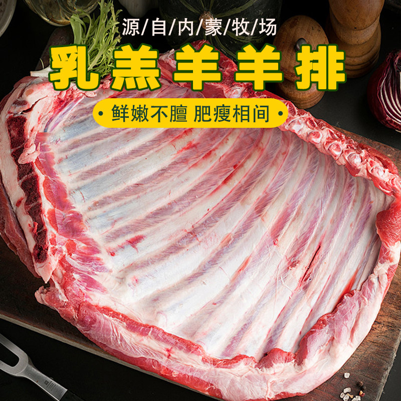 *不冷冻现宰空运*清真内蒙新鲜原切羊肋排手抓纯羊排烧烤扇子骨肉