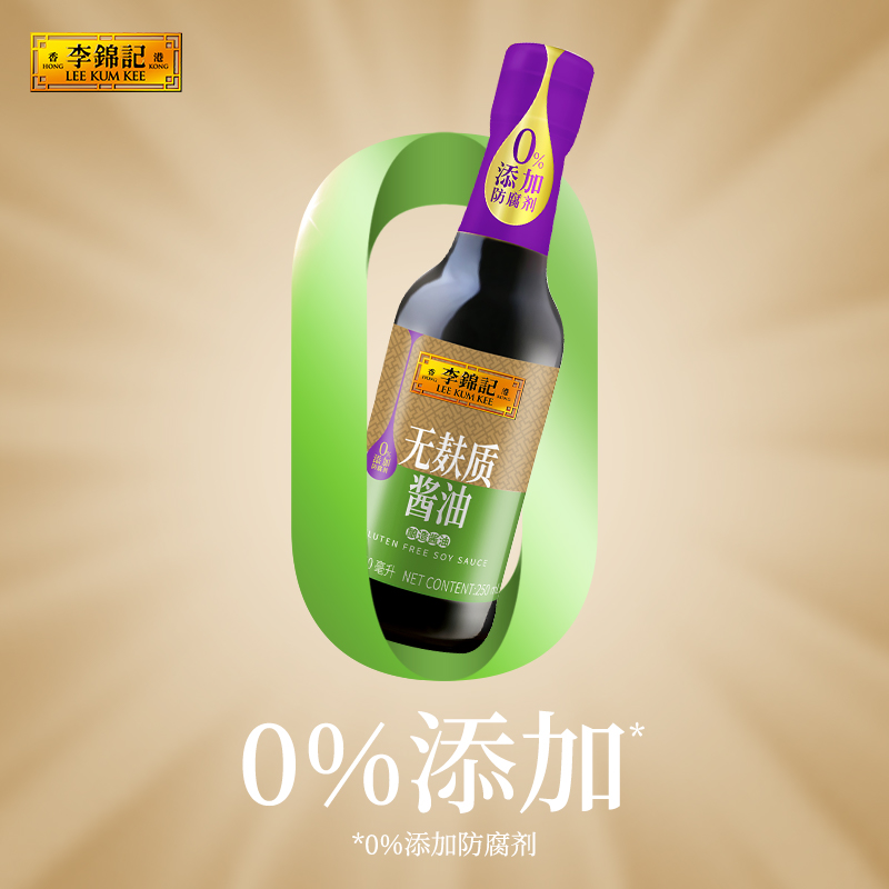 李锦记无麸质酱油250mL瓶装零添加防腐剂酿造生抽酱油炒菜调味品