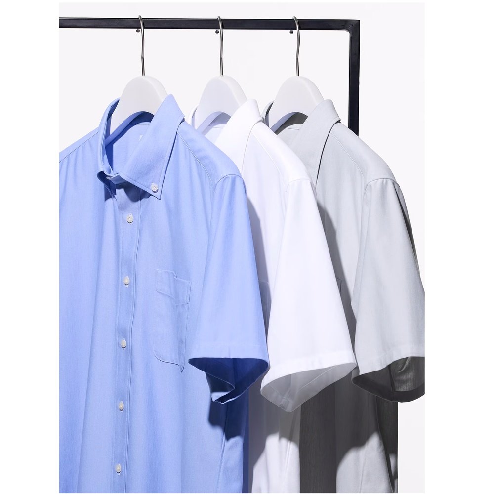 日潮跑腿UNIQLO优衣库男女装快干防皱干式免烫平纹短袖衬衫474513