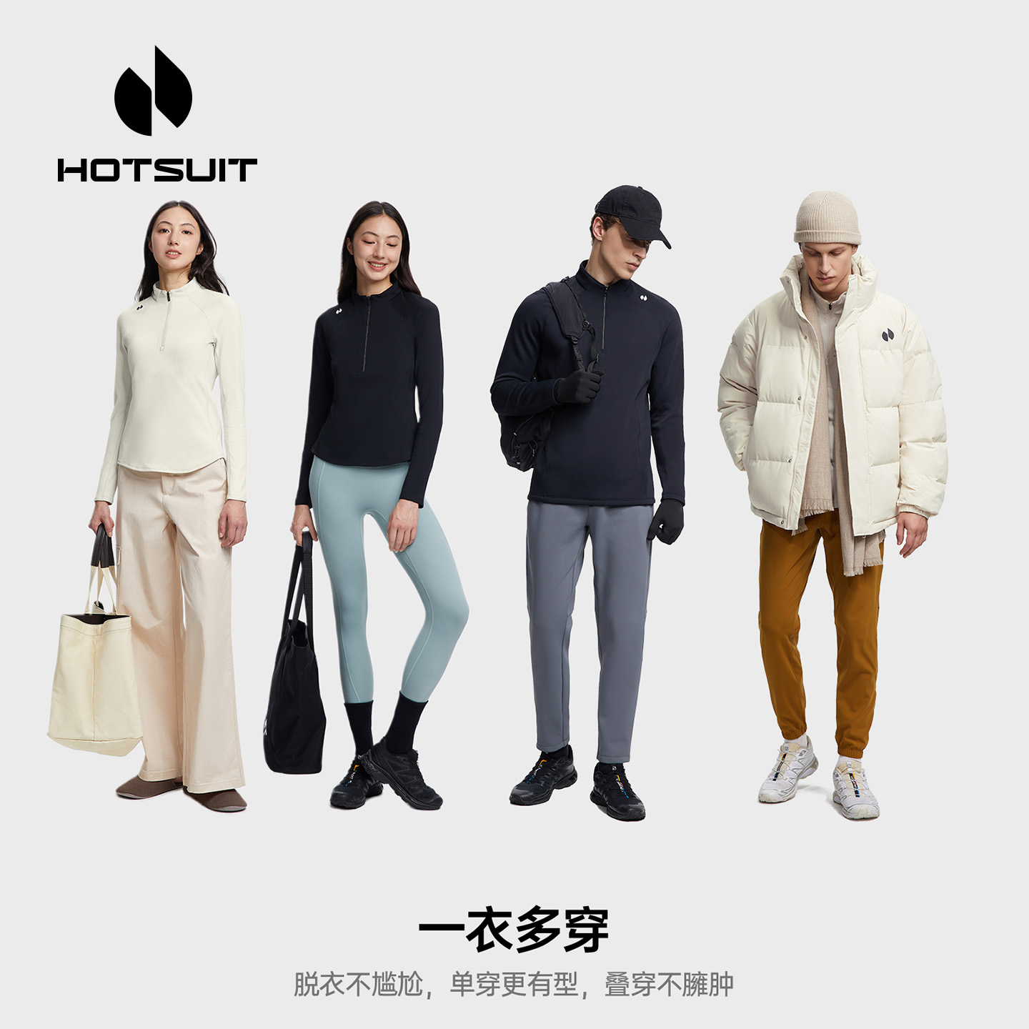 hotsuit后秀长袖t恤男2025新款秋冬格粒绒舒适上衣女半拉链抓绒衣