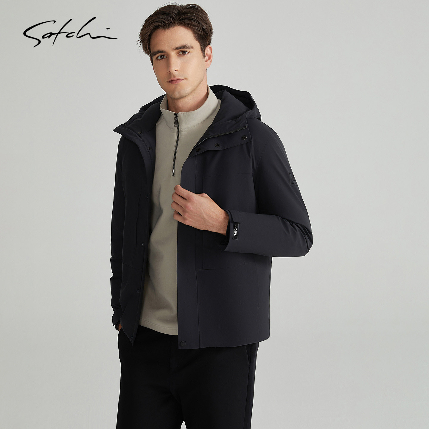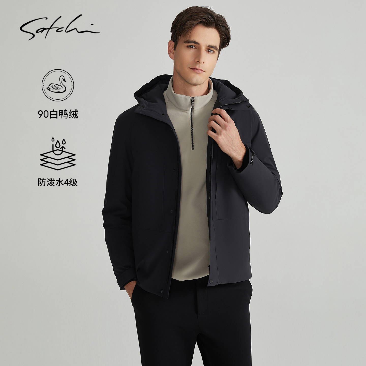 [可拆卸鸭绒内胆]SATCHI沙驰男装男士羽绒服冬季新款连帽短款外套