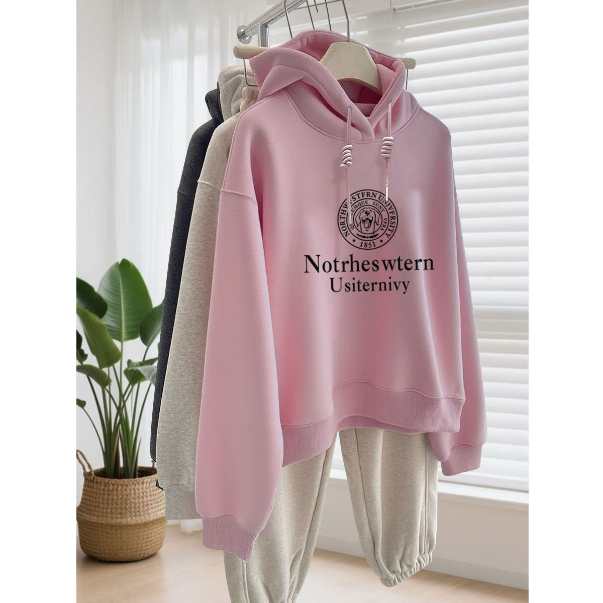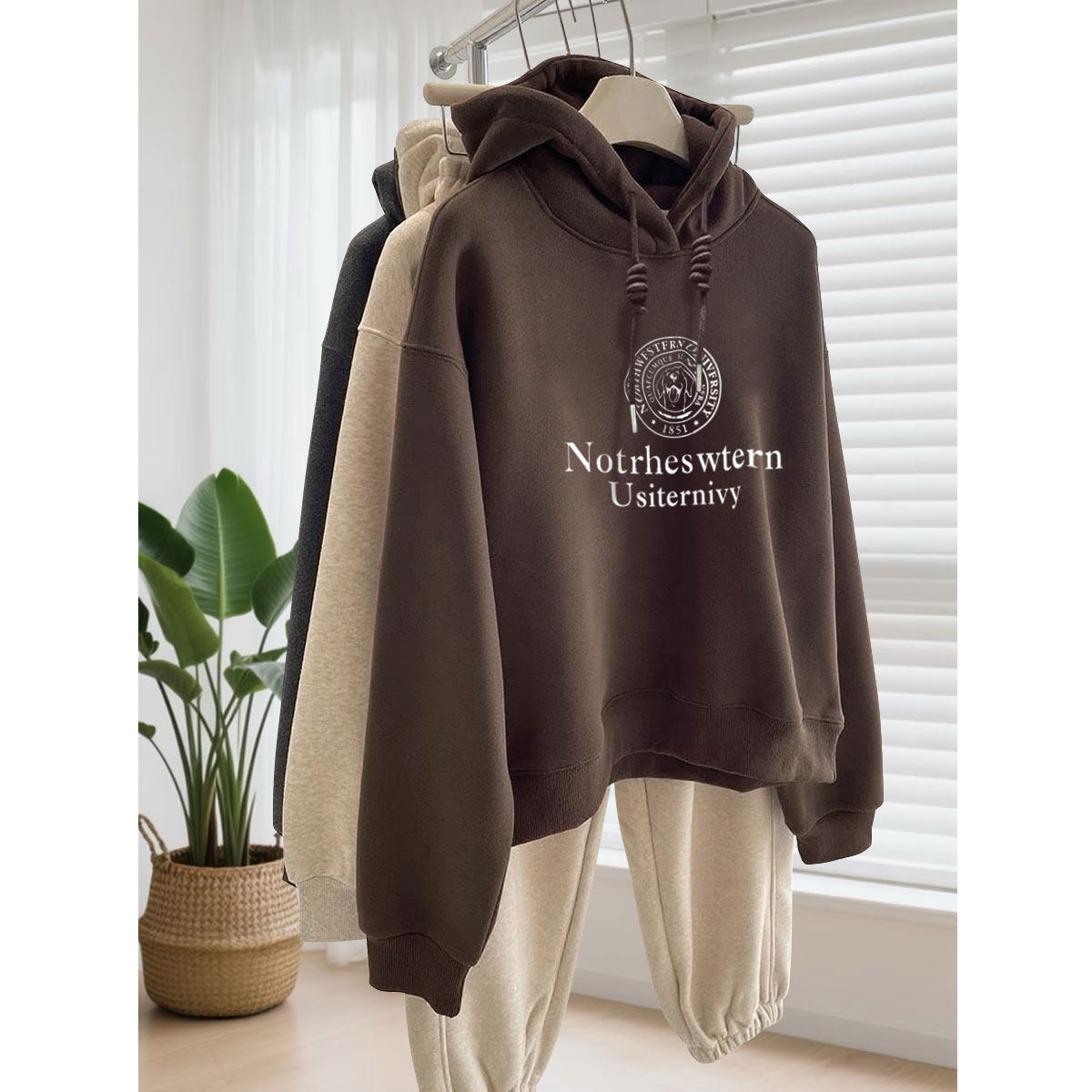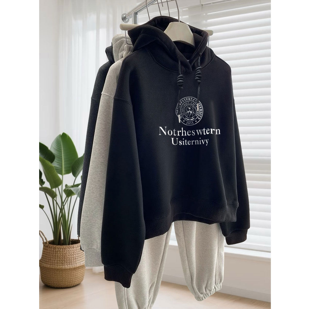 复古字母连帽卫衣女2025春秋冬宽松慵懒风加绒加厚套头长袖外套潮