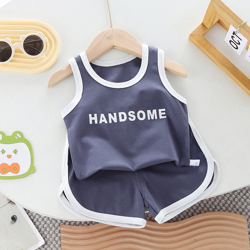 儿童背心套装夏季纯棉男童女宝宝无袖短裤小童运动两件套婴儿夏装