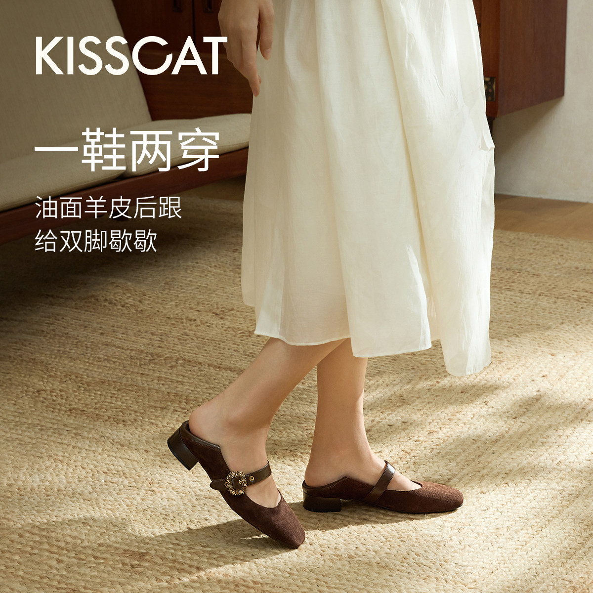 KISSCAT接吻猫[夜秋棠]法式复古玛丽珍鞋春季两穿平底通勤单鞋女