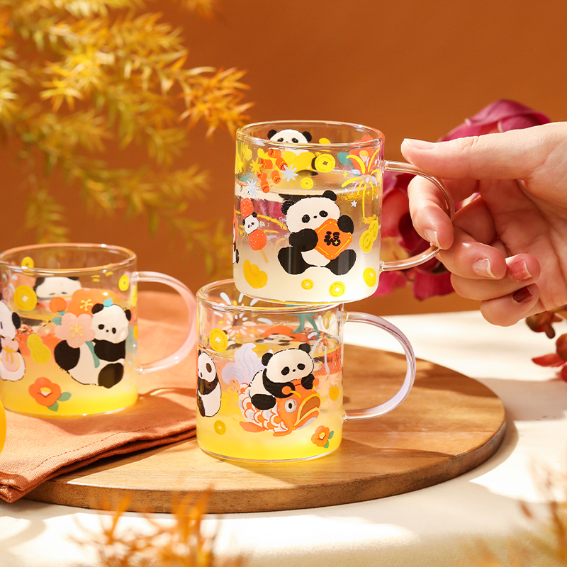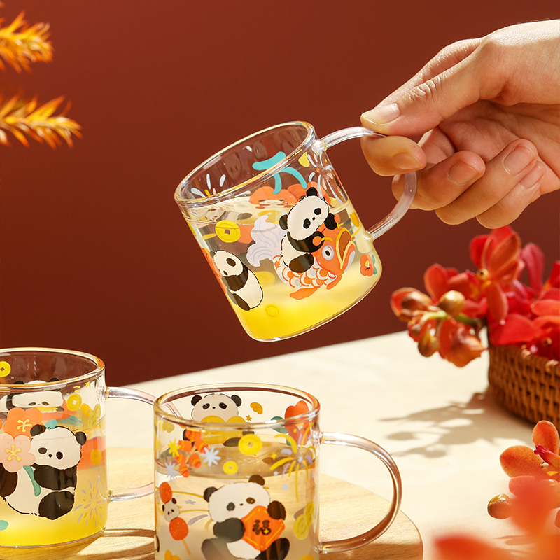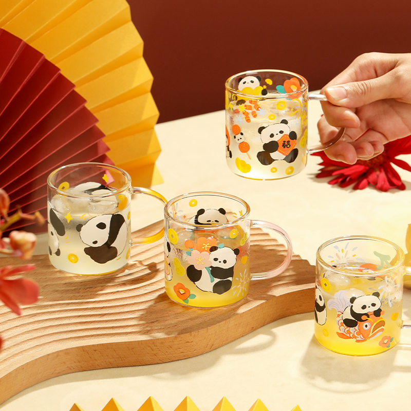 蓝莲花家居熊猫高硼硅玻璃小茶杯高颜值办公室迷你杯子网红款可爱