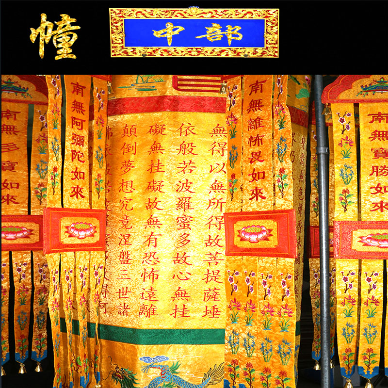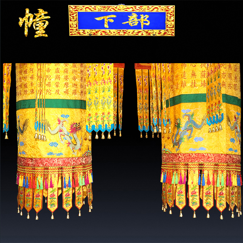 高端绣品宝盖刺绣七宝如来经幢佛家圆幢挂幡龙头钢架提花布佛幡幢