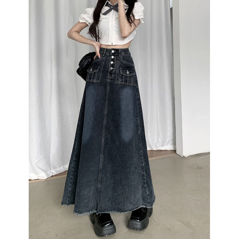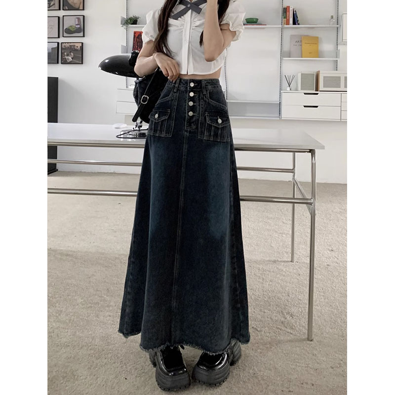 覆古牛仔半身裙女春季新款梨形身材大尺码胖mm显瘦中长版a字包臀