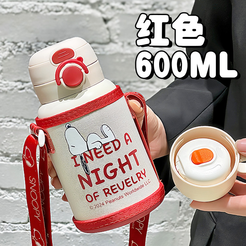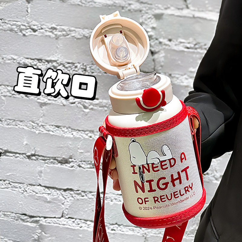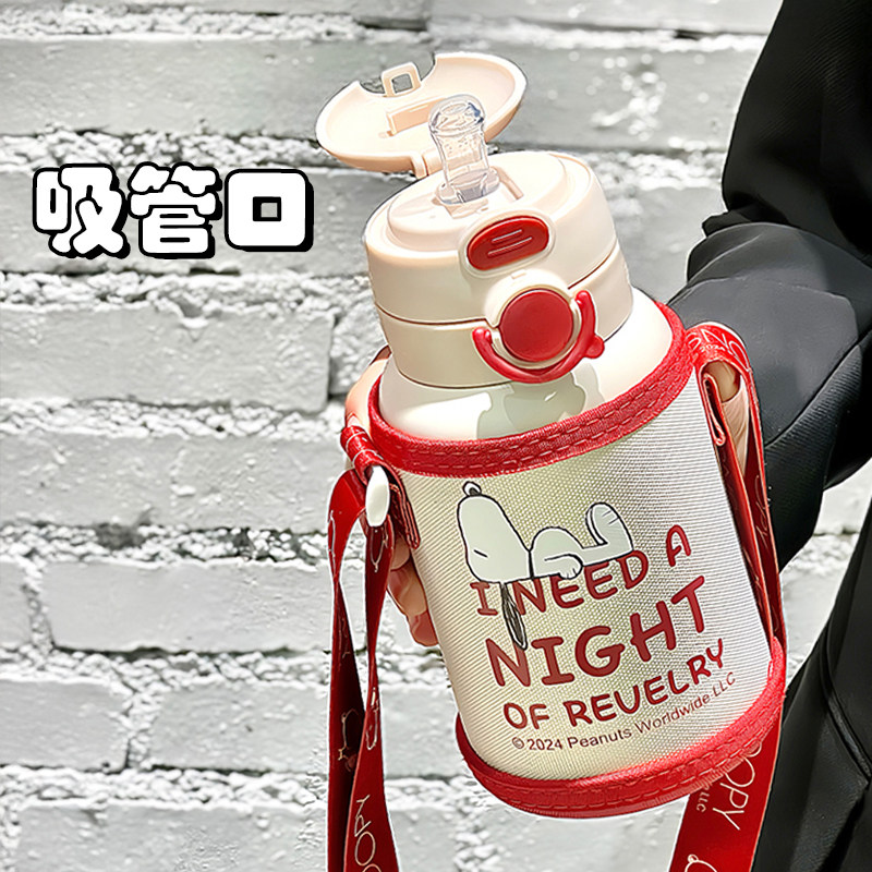 史努比保温杯女生2026新款高颜值学生上学专用便携吸管双饮杯子壶
