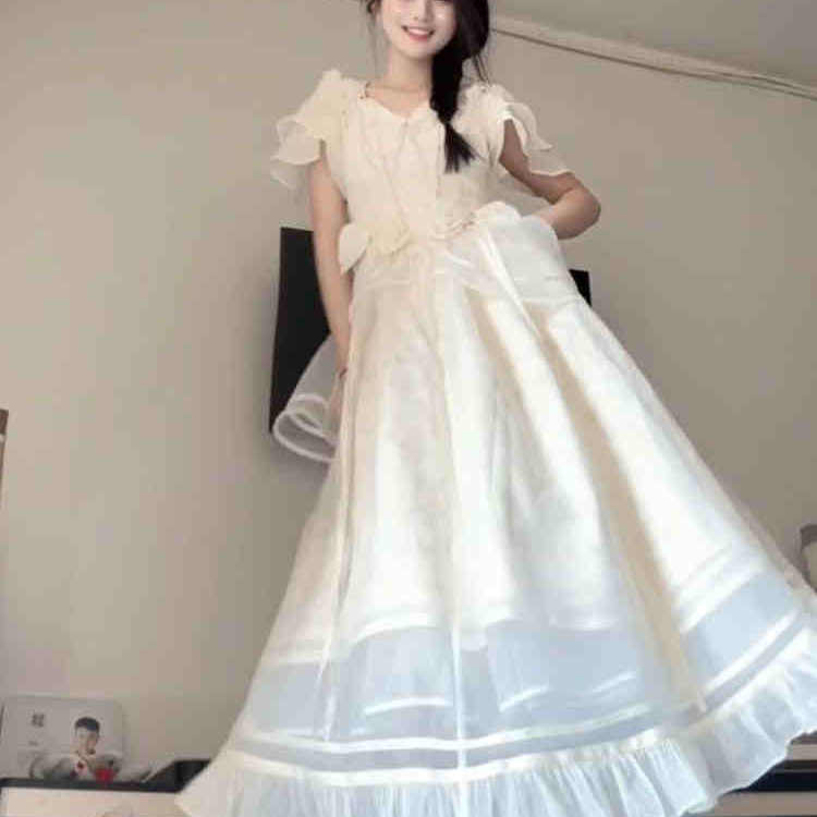 2025夏季新款法式气质宫廷风连衣裙白月光优雅少女感收腰显瘦长裙