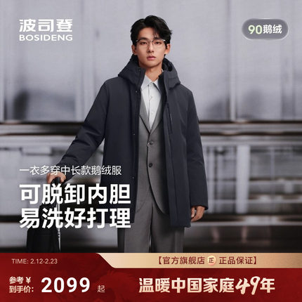 波司登2025新款羽绒服男士商务休闲连帽保暖品质鹅绒内胆可脱卸