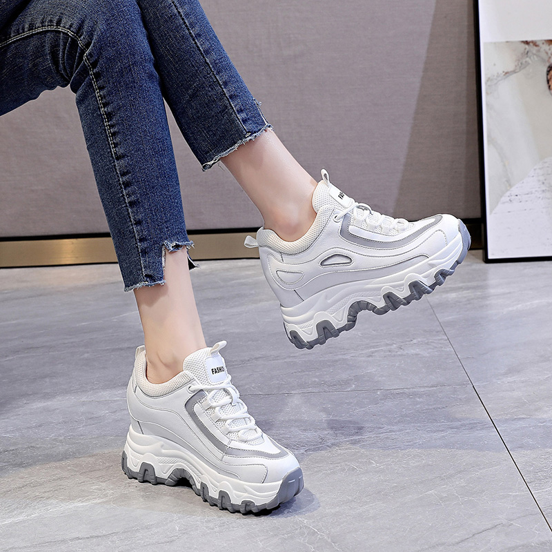 显脚小白色老爹鞋女内增高厚底小个子2025新款加绒爆款百搭松糕鞋