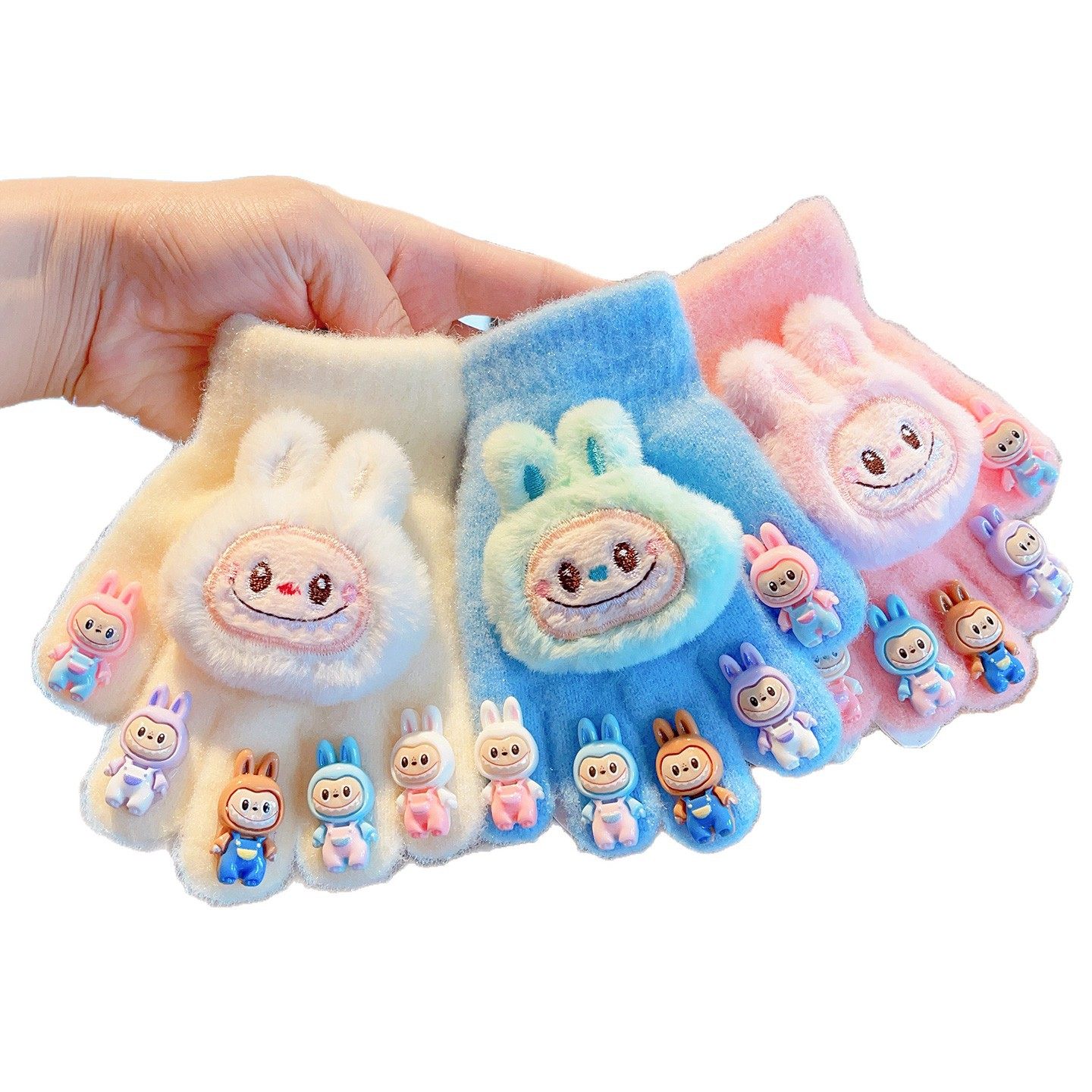 爆款儿童手套拉布布手套保暖毛绒冬季男童女童可爱卡通创意手套