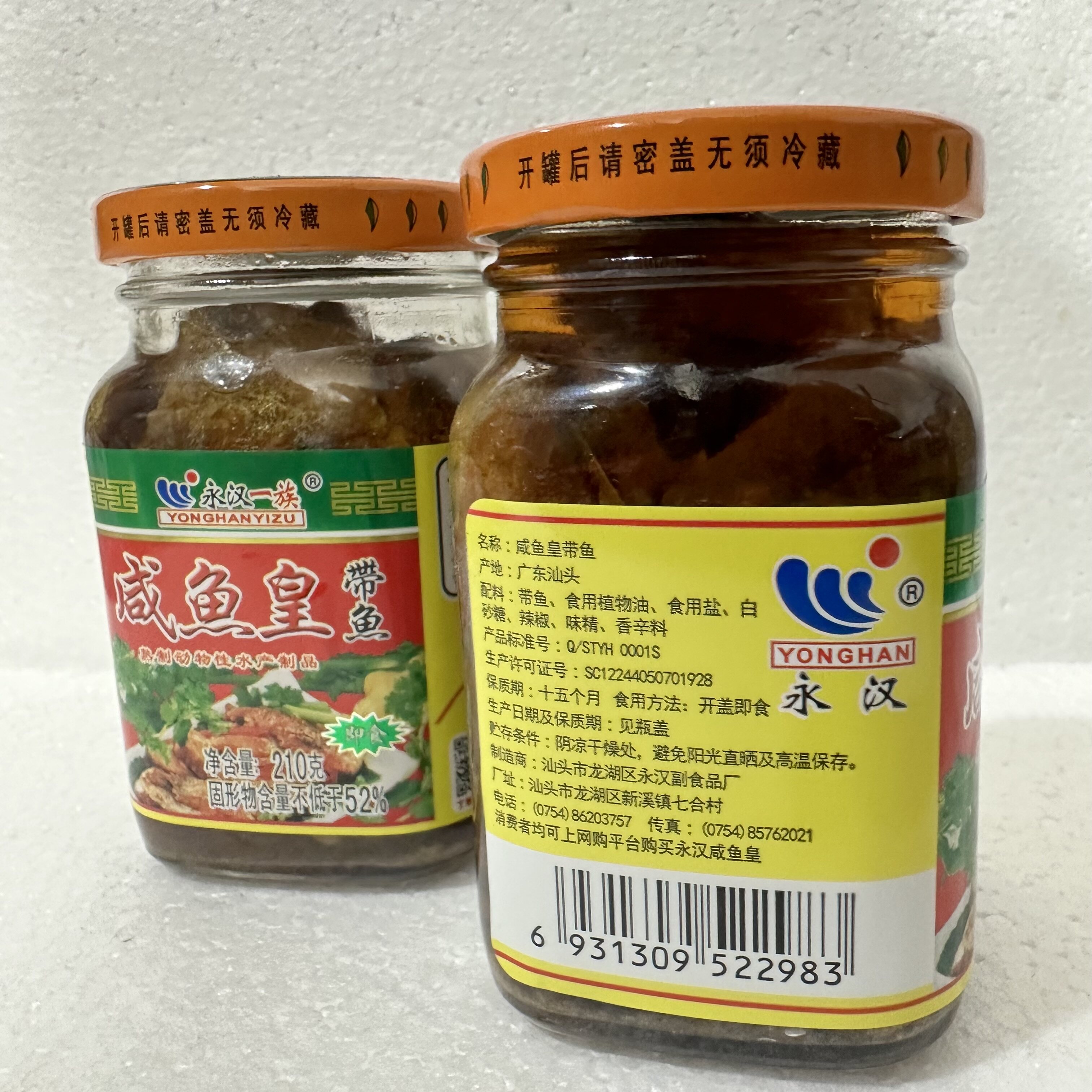 正宗永汉带鱼咸鱼皇罐头210g瓶潮汕汕头特产腌制咸带鱼佐餐杂咸