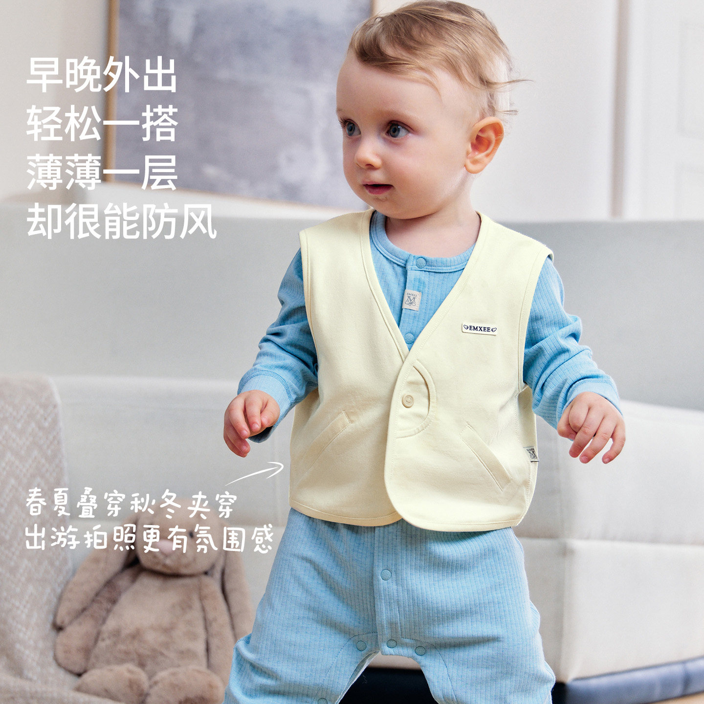 嫚熙童装儿童马甲春季内搭小月龄婴幼儿亲肤透气上衣男女宝宝背心